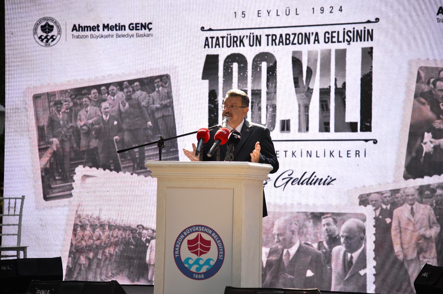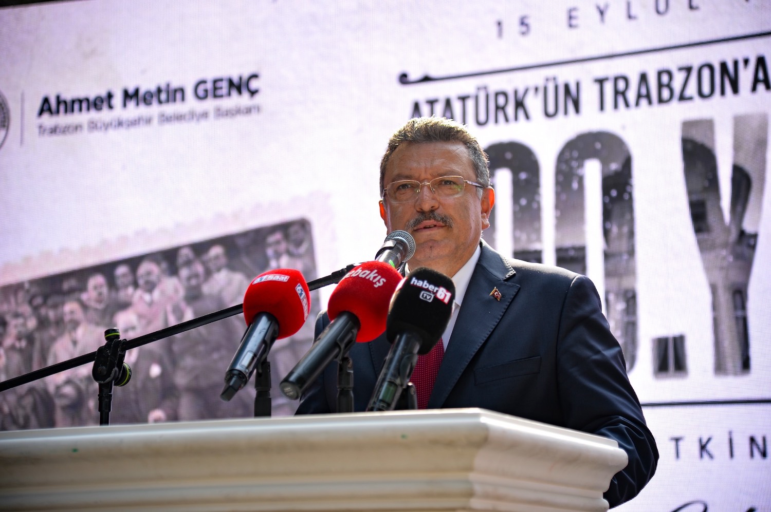 Başkan Genç, sözlerini şöyle sürdürdü: “Gazi Mustafa Kemal Atatürk’ün 15 Eylül 1924 tarihindeki Trabzon ziyaretinde, Trabzonlulara yönelik söylediği veciz sözleri burada bir kez daha hatırlatmak istiyorum: ‘Bu verimli, halkı zeki, girişken ve çalışkan olan Trabzon’u en kısa zamanda içeriye bağlanmış, yani trenle ulaşımı sağlanmış, güzel rıhtım ve limanla donatılmış görmek idealimdir. Trabzon, Türk topluluğunun, cumhuriyetin güçlü, duyarlı, ve önemli dayanak noktalarından biridir.’ Cumhuriyetin ilanından sonra Atatürk’ün 1924 yılındaki yurt gezisinde Trabzon’un önemli bir durak olması, şehrimize duyduğu özel ilgiyi ve sevginin bir ifadesidir.”