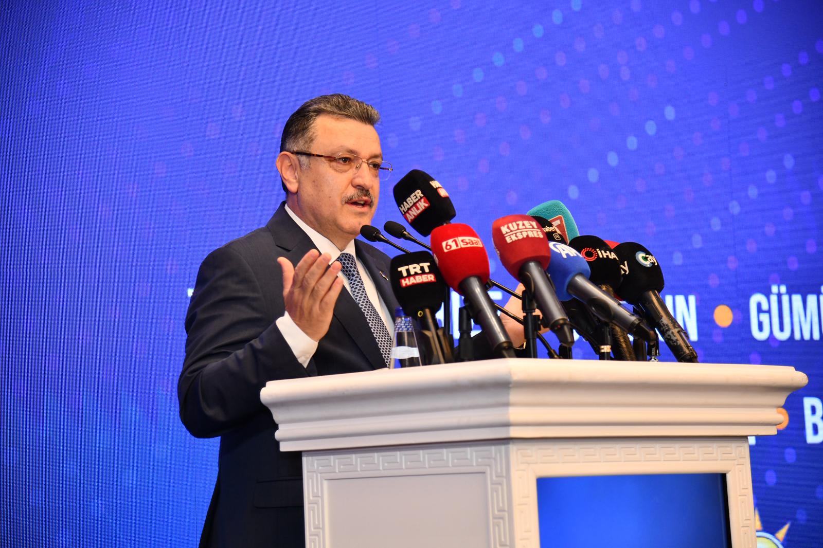 Trabzon Büyükşehir Belediye Başkanı Ahmet Metin Genç, “Trabzon'umuz; cihanşümul padişahlarımızın izini taşıyan müstesna bir şehir. Fatih Sultan Mehmet Han’ın fethettiği, Yavuz Sultan Selim Han’ın 22 yıl valilik yaptığı ve Kanuni Sultan Süleyman’ın doğup büyüdüğü, 17 yaşına kadar yaşadığı kadim şehrimizdir. Toplantımız her ne kadar genel merkezimizin ve genel başkan yardımcımızın takdiriyle yerel yönetim amaçlı olarak düzenlense de aynı zamanda teşkilatımızla birlikte yürütülen bir istişare ve değerlendirme toplantısı hüviyetindedir. Bu davanın kuruluşundan itibaren içinde olan bir yol arkadaşınız ve beş yıl boyunca bu davaya il başkanı olarak hizmet etmiş bir kardeşiniz olarak, bu toplantıyı son derece önemli buluyorum. Doğrudur; bugün bizler belediye başkanlarıyız, il genel meclisi başkanlarıyız. Ancak aynı zamanda bu büyük teşkilatın mensuplarıyız. Şiar edindiğim güzel bir söz vardır: 'Hangi makamda olursak olalım; önce teşkilat, sonra icraat.' Teşkilat olmadan hiçbir başarı sürdürülebilir değildir. Çünkü bizler, 16 yaşından itibaren inandığı değerlerin ve medeniyetimizin yüklediği sorumluluğun bilinciyle, kendini milletine, memleketine ve mazlum coğrafyaların umudu olan kardeşlerimize hizmet etmeye adamış bir liderin; Recep Tayyip Erdoğan’ın dava arkadaşlarıyız” dedi.