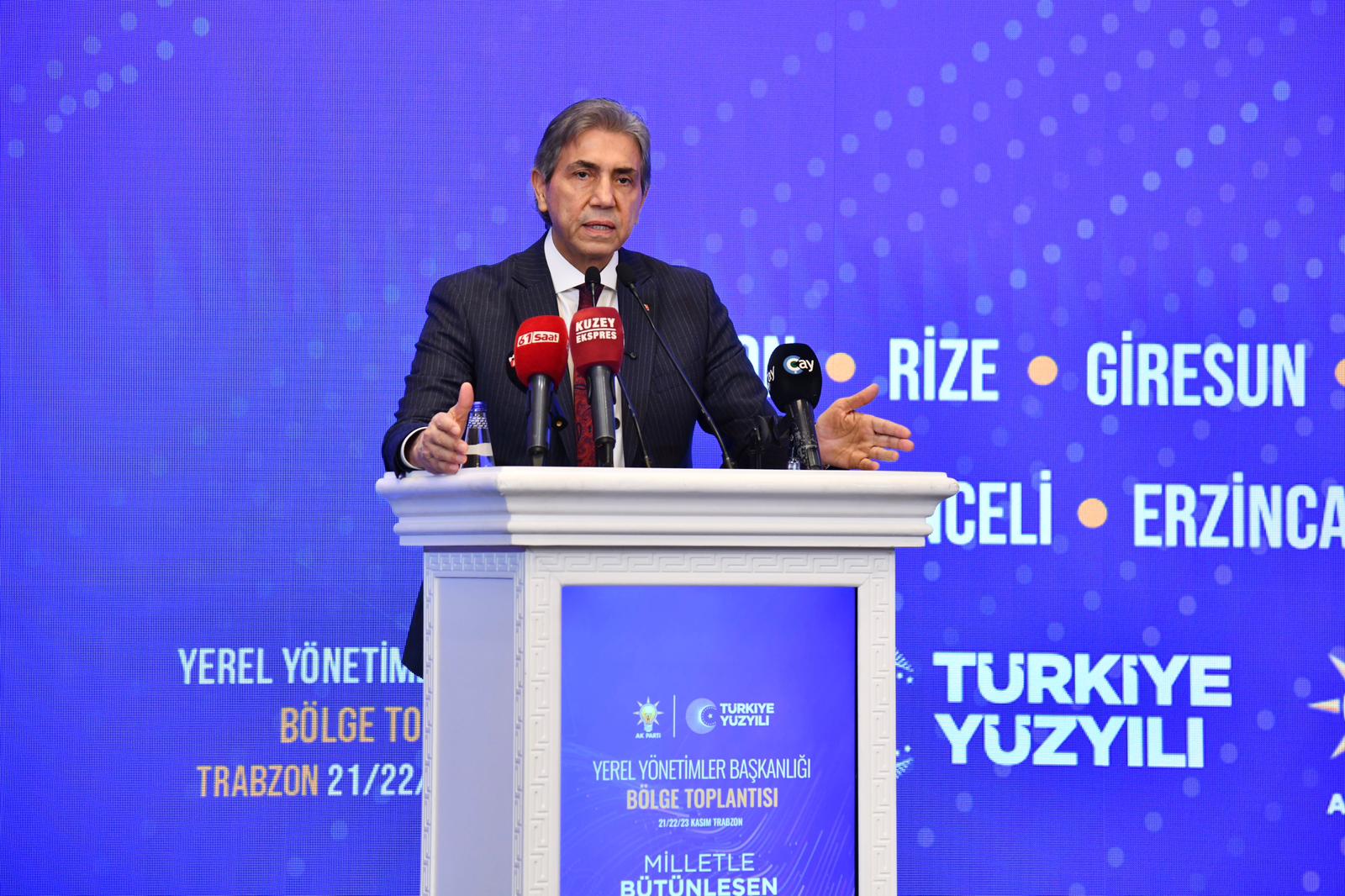 AK Parti Genel Merkez Yerel Yönetimler Başkanlığı tarafından, yerel yönetimlerin çalışmalarını değerlendirmek, deneyim paylaşımını artırmak ve gelecek dönem stratejilerini belirlemek amacıyla Trabzon’da düzenlenen Yerel Yönetimler Bölge Toplantısı yoğun katılımla başladı. Trabzon Büyükşehir Belediyesi’nin ev sahipliği yaptığı programa Ulaştırma ve Altyapı Bakanı Abdulkadir Uraloğlu, AK Parti Yerel Yönetimlerden Sorumlu Genel Başkan Yardımcısı Mustafa Demir, AK Parti Genel Merkez Yerel Yönetimler Başkan Yardımcısı Recep Altepe, Trabzon Büyükşehir Belediye Başkanı Ahmet Metin Genç, AK Parti Trabzon Milletvekili Vekili Vehbi Koç, AK Parti Trabzon İl Başkanı Sezgin Mumcu, Ak Parti Trabzon Kadın Kolları Başkanı Ayfer Cihan’ın yanı sıra Rize, Giresun, Gümüşhane, Tokat, Kırşehir, Yozgat, Sivas, Tunceli, Erzincan, Bayburt, Artvin, Ardahan ve Kars'tan gelen milletvekilleri, il ve ilçe başkanları, AK Partili belediye başkanları, İl Genel Meclisi başkanları ve teşkilat mensupları katıldı.