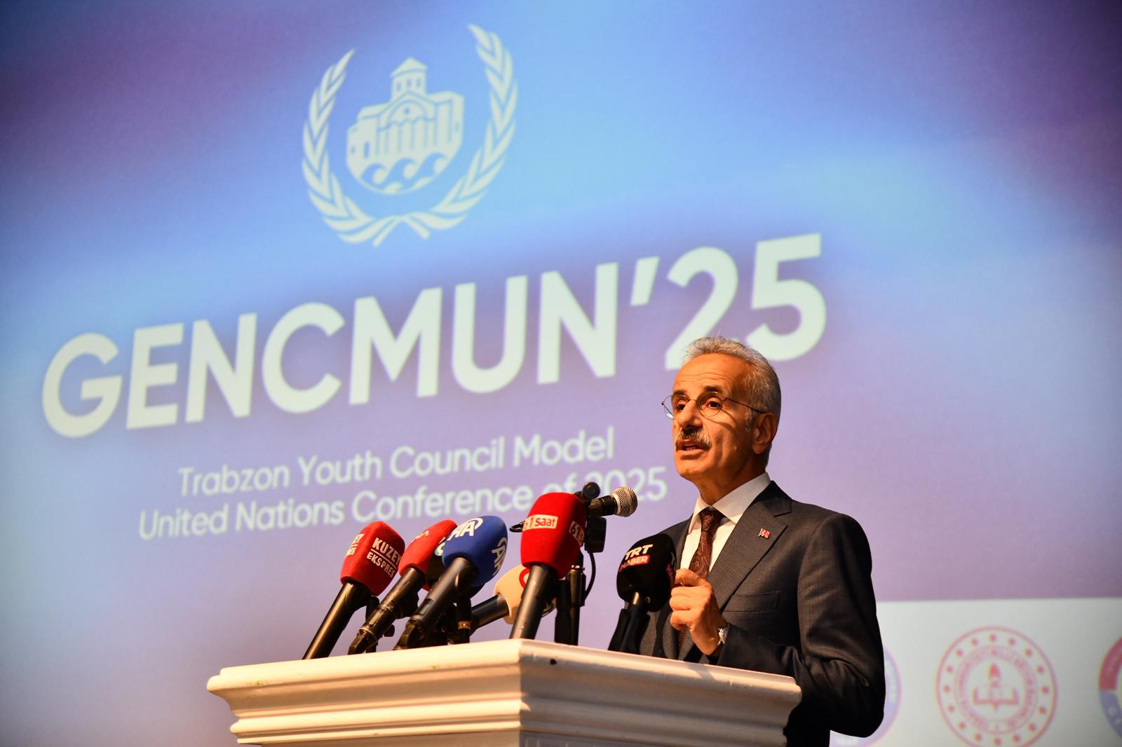 Trabzon Büyükşehir Belediyesi Gençlik Meclisi ile Milli Eğitim Bakanlığı iş birliğinde “Genç Diplomasi Trabzon’da Buluşuyor” mottosuyla düzenlenen ve geleceğin diplomatları ile liderlerini yetiştirmeyi hedefleyen Model Birleşmiş Milletler (MUN) Simülasyonu (GENCMUN’25) Konferansı’nın kapanışı, Ulaştırma ve Altyapı Bakanı Abdulkadir Uraloğlu ile Trabzon Büyükşehir Belediye Başkanı Ahmet Metin Genç katılımıyla gerçekleşti. Hamamizade İhsan Bey Kültür ve Sanat Merkezi’nde gerçekleştirilen programa ayrıca Trabzon Valisi Aziz Yıldırım, AK Parti Gençlik Kolları Başkanı Mahmut Çavuş, Gençlik Meclisi Başkanı Abdurrahman Can Aydın ve çok sayıda öğrenci katıldı.