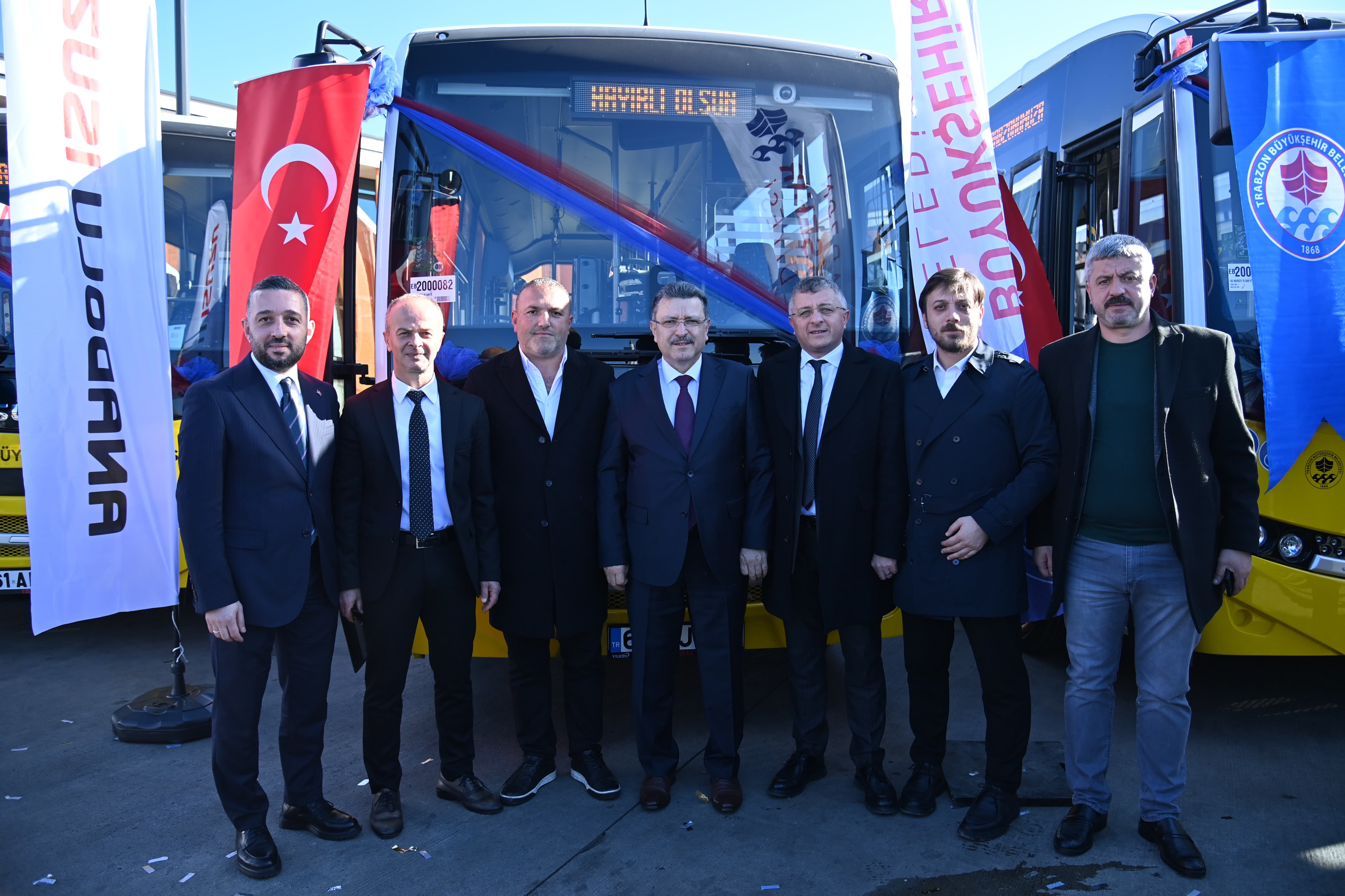 Trabzon Büyükşehir Belediyesi ulaşım filosuna dahil edilen 19 yeni otobüs, Başkan Ahmet Metin Genç’in katıldığı törenle hizmete alındı. Ulaşım konusuna büyük önem verdiğini ifade eden Başkan Genç, “Trabzon’umuzun ulaşım standardının çıtasını filomuza eklediğimiz 19 yeni otobüs ile yukarıya çıkarıyoruz. Göreve gelirken söz verdiğimiz birçok alan vardı. Halkımızın öne çıkan taleplerini göreve geldiğimizde önceliklendirmek ve bu konuda adımları atmak için kararlılık ortaya koyduk. Büyükşehir Belediyesi olarak söz verdiğimiz birçok projeyi hayata geçirmenin çabası içerisindeyken öne çıkan konularımızın başında ulaşım geliyor. Bu alanda öncelediğimiz konu; seyahatin güvenli, konforlu ve nitelikli olması. Büyükşehir Belediyemizin ulaşım ağındaki güzergah taleplerini dikkate almak için bir takviye gerekliliği ortaya çıktı. Bugün de bunlardan bir tanesini yapıyoruz. Mutluyuz, gururluyuz. 19 yeni otobüsü filomuza katıyoruz. 10 adet 8 metre boyunda, 4 adet, 8 buçuk metre boyunda ve 5 adet 12 metre boyunda, 2024 model olan otobüslerimizi hizmete alıyoruz. Toplamda Büyükşehir Belediyesi filosunu 174’e çıkarıyoruz. Hayırlı, uğurlu olsun inşallah” dedi.