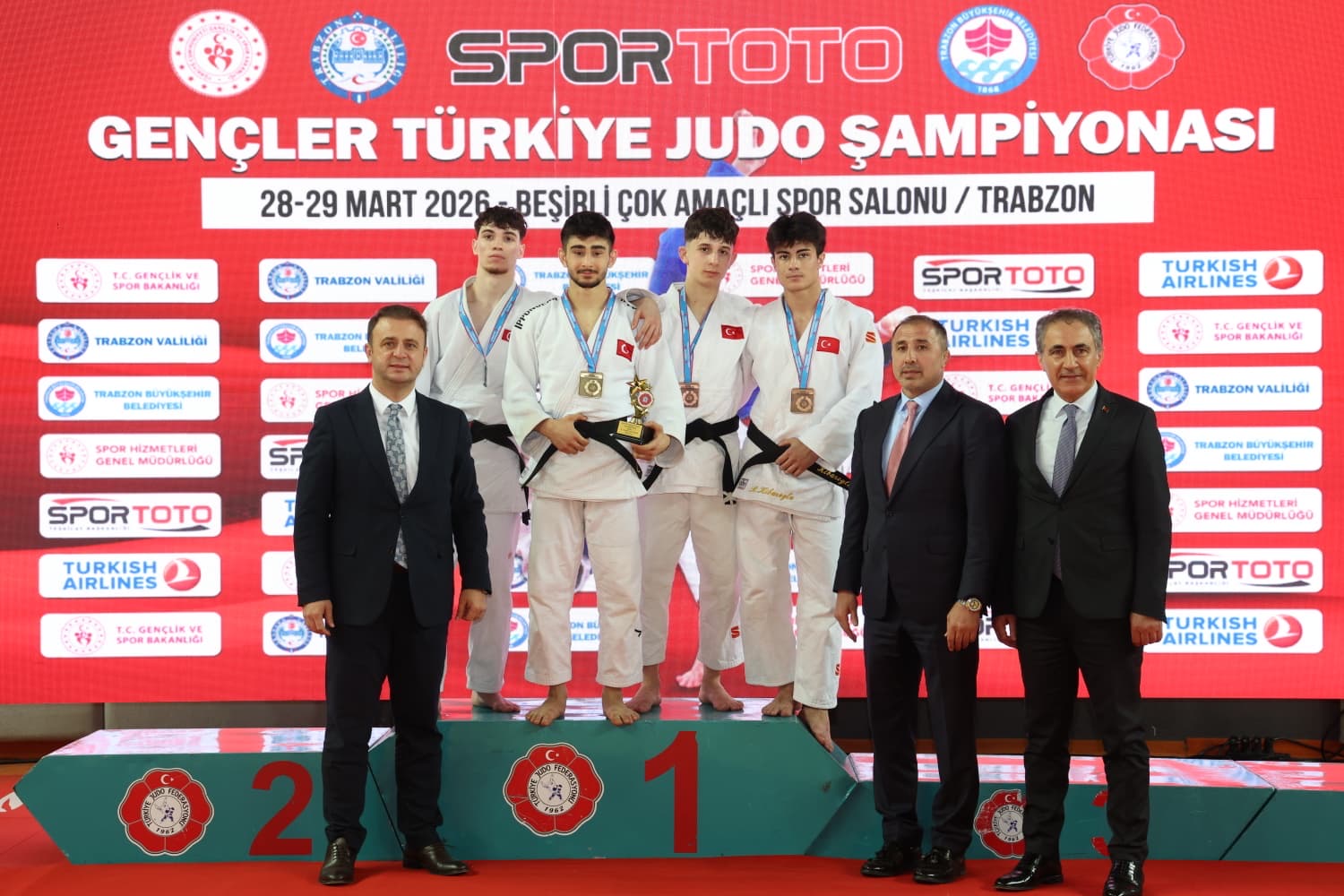 Trabzon Büyükşehir Belediyesi’nin ev sahipliğinde; Trabzon Valiliği ve Gençlik ve Spor İl Müdürlüğü iş birliğiyle düzenlenen Spor Toto Gençler Türkiye Judo Şampiyonası başladı. Beşirli Çok Amaçlı Spor Salonu’nda gerçekleştirilen organizasyona 50 ilden toplam 787 sporcu katıldı. Şampiyonanın ilk gününde yapılan müsabakalar sonucunda dereceye giren sporcular şöyle oldu: Erkekler 60 kilo kategorisinde Furkan Salih Gül birinci, Enes Bilge ikinci olurken Ramazan Kibaroğlu ile Necdet Salih Pala üçüncülüğü paylaştı. Erkekler 66 kilo kategorisinde Mustafa Berat Şimşek birinci, Ömer Faruk Pınar ikinci oldu. Üçüncülüğü ise Güven Kurt ile Tunahan Dinç paylaştı. Erkekler 73 kilo kategorisinde Ümit Çırpan birinciliği, Burak İsmail Şengür ikinciliği elde ederken Yusuf Buluk ile Ömer Faruk Turgutlu üçüncülüğü paylaştı. Erkekler +100 kilo kategorisinde ise Mahmutcan Maden birinci, Berat Hıdır ikinci oldu. Battal Serdar Arslan ile Zübeyir Talha Polat da üçüncülüğü paylaştı.