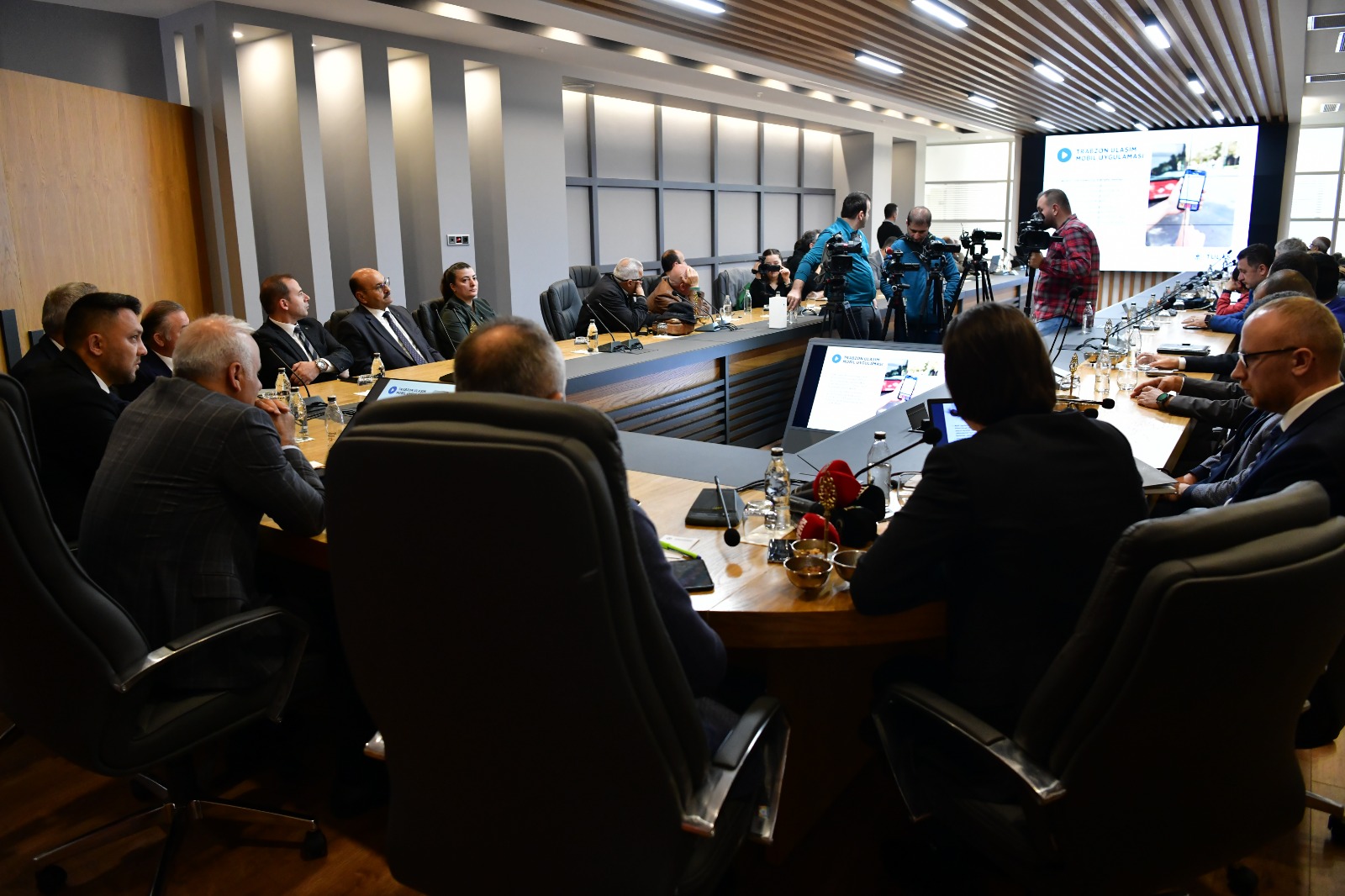 Göreve başladığı günden itibaren ekibine “Tüm projelerimizde önce engelli bireylerimizi düşünmeliyiz” diyen Trabzon Büyükşehir Belediye Başkanı Murat Zorluoğlu, gönüllere dokunmaya devam ediyor. Engelsiz Yaşam Merkezi, Engelli Araç Atölyesi ve Engelsiz Taksi ve üst geçitlere asansör uygulaması başta olmak üzere özel gereksinimli bireylere yönelik yaptığı çalışmalarla örnek olan Başkan Zorluoğlu, yeni projeleri hayata geçiriyor. Son olarak Trabzon’da görme engelli bireylerin toplu taşıma araçlarını kullanırken sorun yaşamamaları için kullanıma sunulan “Engelsiz Trabzon” mobil uygulamasının tanıtım toplantısı, bugün Büyükşehir Belediye Başkanı Murat Zorluoğlu'nun riyasetinde yapıldı. Basın mensuplarının yoğun ilgi gösterdiği toplantıya, Büyükşehir Belediyesi Genel Sekreteri Ahmet Adanur, TULAŞ Genel Müdürü Samet Ali Yıldız, Trabzon Kent Konseyi Engelliler Meclisi Başkanı Savaş Yol ve daire amirleri katıldı.