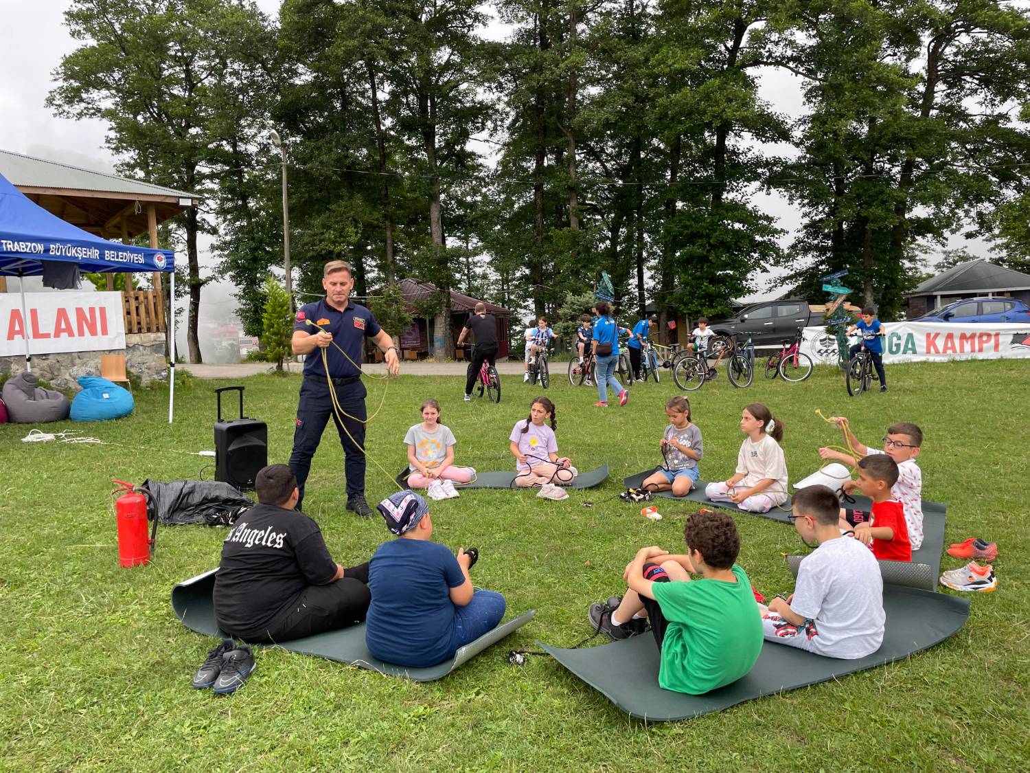 Trabzon Büyükşehir Belediyesi Gençlik ve Spor Hizmetleri Dairesi Başkanlığı’nın, öğrencilerin yaz tatilini verimli ve eğlenceli geçirmeleri amacıyla düzenlediği doğa kamplarına katılım yoğun oldu. Mersin Üzümlü Piknik Alanı’nda 8-15 yaş arası çocuklar için düzenlenen konaklamalı kamplar, 40’ar kişilik grupların katılımıyla devam ediyor. Genel kampçılık bilgileri ve çadır kurma eğitimi ile başlayan etkinlikte çocuklar çadırlarda bir gece konaklıyor. Bugüne kadar kamplara katılan 8-9, 10-11 ve 12-13 yaş aralığındaki 120 çocuğa, yön bulma eğitimi, bisiklet sürüşü, ipte yürüme ve tırmanış ile parkur yarışları gibi heyecan verici aktiviteler yaptırıldı. Küçük kampçılar, drama etkinlikleriyle de takım çalışmasına teşvik edildi. Çocuklar, doğa yürüyüşleri sırasında çevre bilinci kazanırken, ateş yakma teknikleri ve kamp malzemelerinin kullanımı hakkında da detaylı bilgiler edindiler. Çocuklara ayrıca köpekli arama kurtarma, ilk yardım, ip bağlama yöntemleri ve yangın eğitimi de verildi. Doğada eğlenceli ve öğretici aktivitelerle dolu dolu vakit geçiren küçük kampçılar, unutamayacakları bir macera yaşamış oldu.