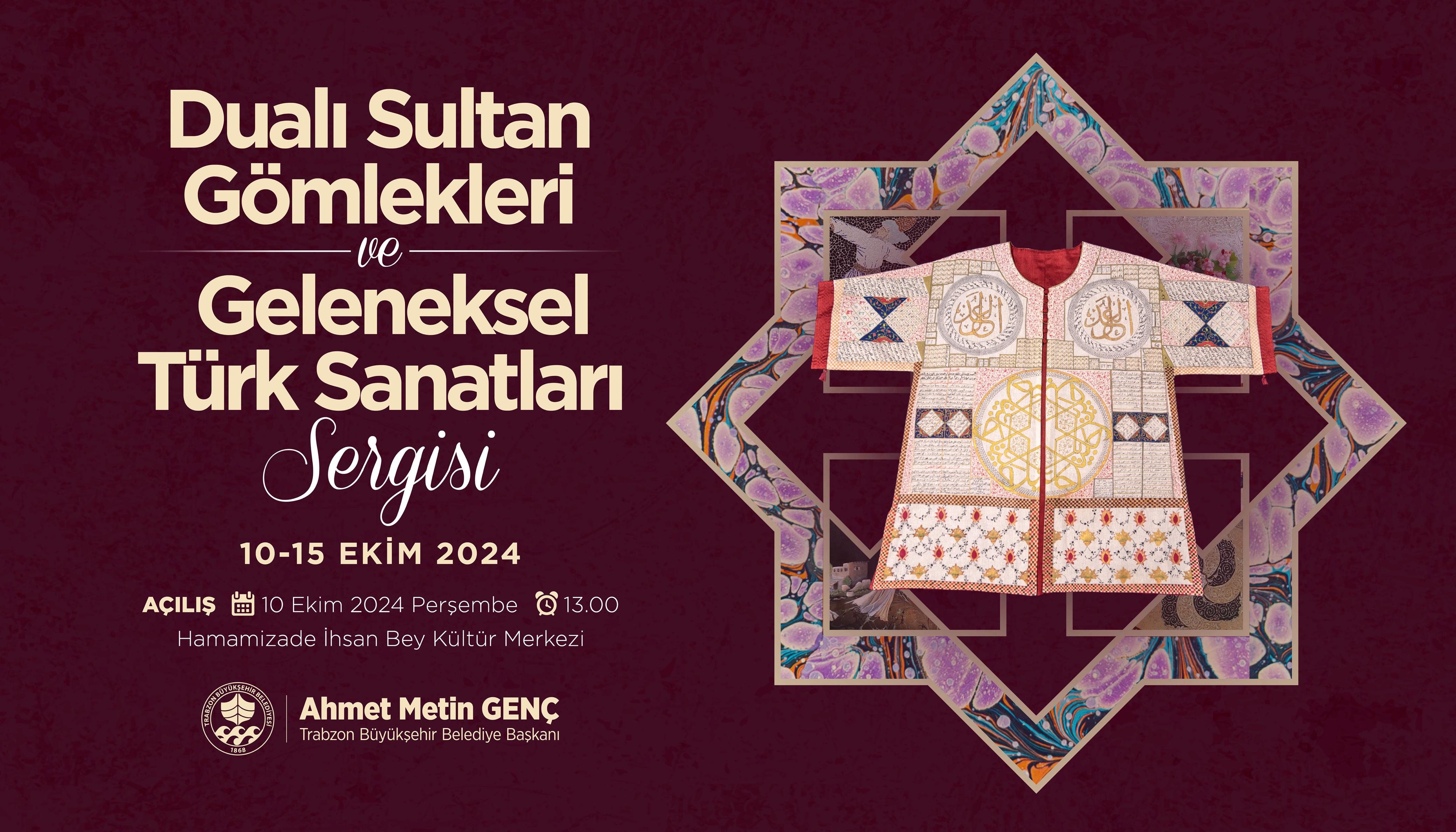 Trabzon Büyükşehir Belediyesi tarafından düzenlenen Dualı Sultan Gömlekleri ile Geleneksel Türk Sanatları Sergisi, yarın saat 13.00'te Hamamizade İhsan Bey Kültür Merkezi'nde açılıyor.