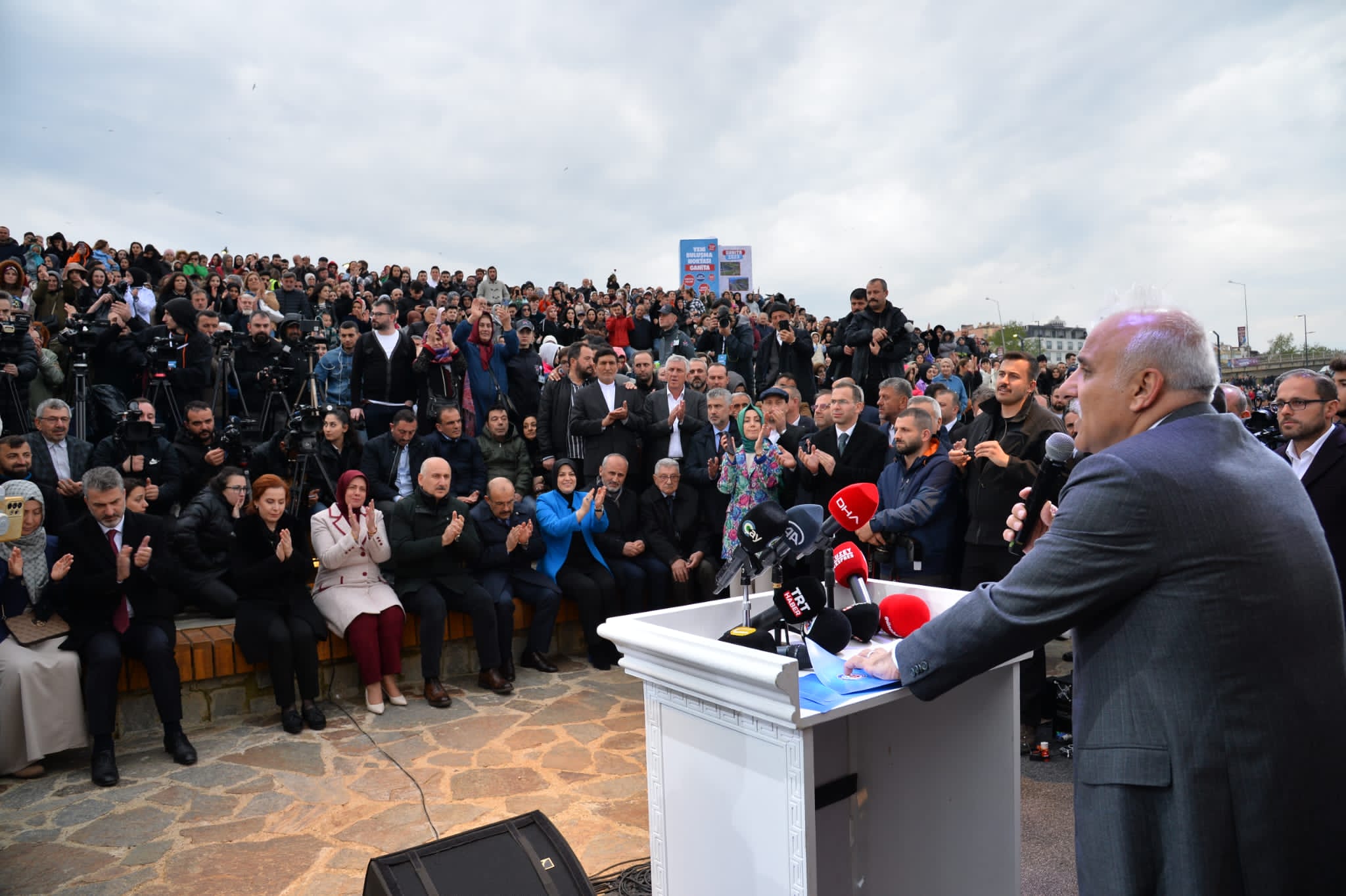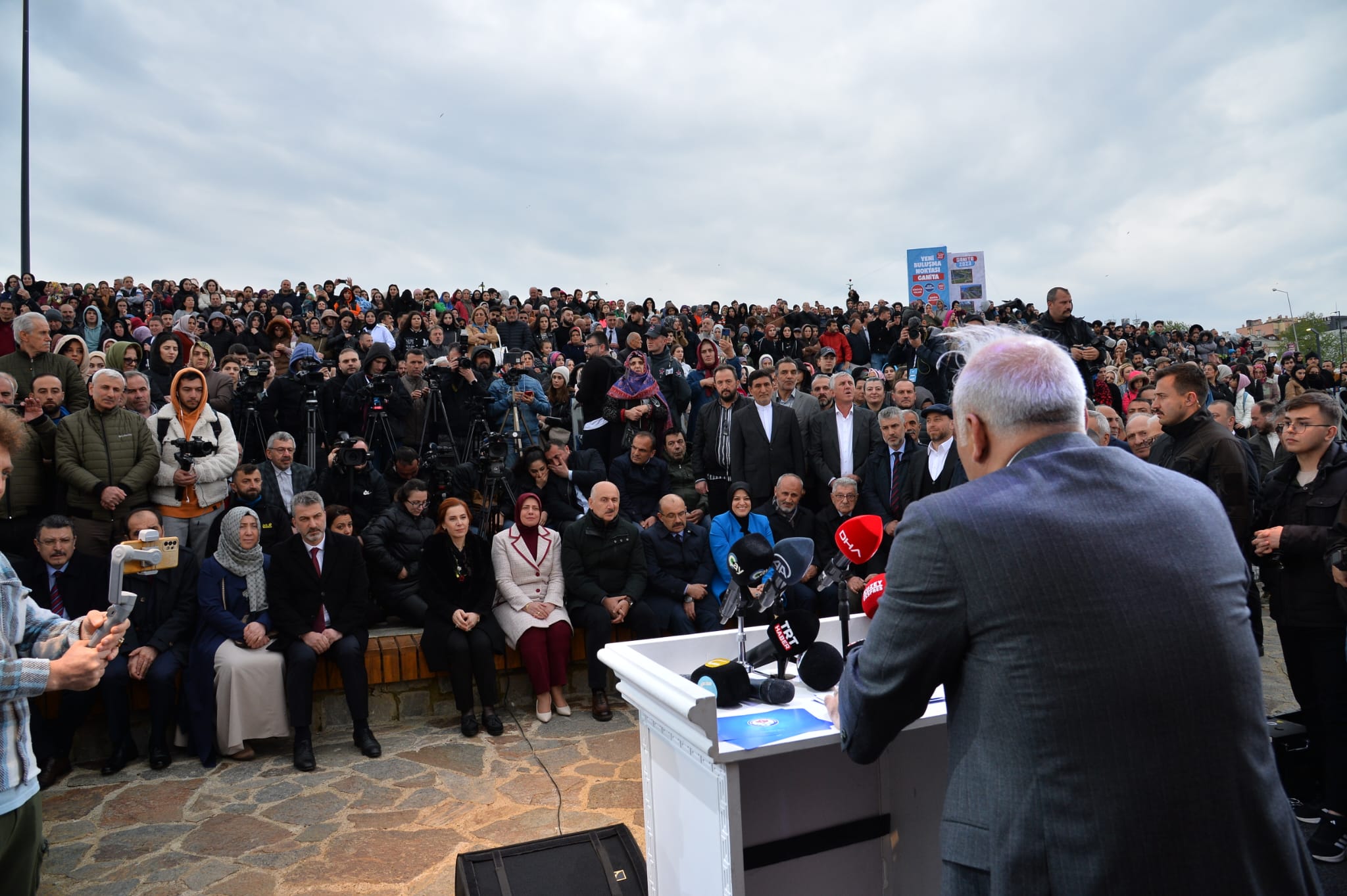 “İnşallah eser ve hizmet fırtınası sürecek. Demiryolumuz hafif raylı sistem yapılacak. Evet Trabzon içi kalaylı kazan. Trabzon Türkiye'nin yıldızı olacak onun için sizden yetki ve güç istiyoruz. Bütün Türkiye'ye gururla hizmet etmek için çalışıyoruz. Burada doğduk burada öleceğiz. O sorumlulukla sizden güç ve destek istiyoruz. Yeni istihdam yeni turizm alanlarıyla beraber şehri yöneteceğiz. 6 tane çok kıymetli arkadaşımızla bu göreve talip olduk. Bütün hedeflerimiz yatırımlarımız bellidir. Bu yatırımlar için emeği geçen herkese teşekkür ediyorum. Daha güzellerini yapacağız. Akyazı'ya kadar burayı uzatacağız. Çok büyük hayallerimiz var. Tekrar bu eser için Büyükşehir Belediye Başkanımıza teşekkür ediyorum. Bize Trabzon'dan vereceğiniz destekle daha güçlü olacağız."