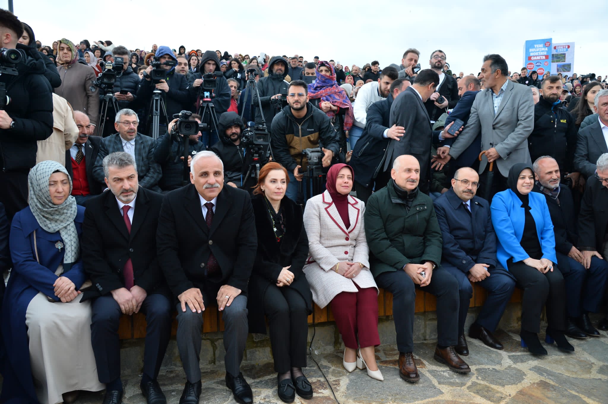 2023’ü açılış senesi ilan eden Trabzon Büyükşehir Belediye Başkanı Murat Zorluoğlu, vizyon projelerini birbiri ardına hizmete açıyor. Cumartesi günü bölgenin ilk ve tek Kadın Yaşam ve İstihdam Merkezi’ni tüm kadınların istifadesine sunan Başkan Zorluoğlu, bu akşam da muhteşem bir törenle Ganita-Faroz Sahil Düzenleme Projesi’nin açılışını gerçekleştirdi. Geçtiğimiz aylarda Ganita-Faroz’u mayıs ayı içerisinde açacaklarını açıklayan Başkan Zorluoğlu, hemşehrilerini söz verdiği tarihten de önce denizle buluşturdu. Başkan Zorluoğlu’nun ev sahipliğinde, Ulaştırma ve Altyapı Bakanı Adil Karaismailoğlu’nun teşrifiyle gerçekleştirilen açılış törenine; Trabzon Valisi İsmail Ustaoğlu, eski Bakan Mehmet Cahit Turhan, Büyükşehir Belediye Başkan Vekili Atilla Ataman, AK Parti Milletvekilleri Muhammet Balta, Salih Cora ve Bahar Ayvazoğlu ile Milletvekili adayları Mustafa Şen, Yılmaz Büyükaydın, Vehbi Koç, Meryem Sürmen, Zafer Ofluoğlu, AK Parti İl Başkanı Sezgin Mumcu, MHP İl Başkanı Ömer Ayar ve sivil toplum kuruluşu temsilcileri katıldı. Görkemli açılış törenine Trabzon halkı ise adeta akın etti. Açılışa katılan binlerce vatandaşa Trabzon Büyükşehir Belediyesi tarafından balık-ekmek ikram edildi.