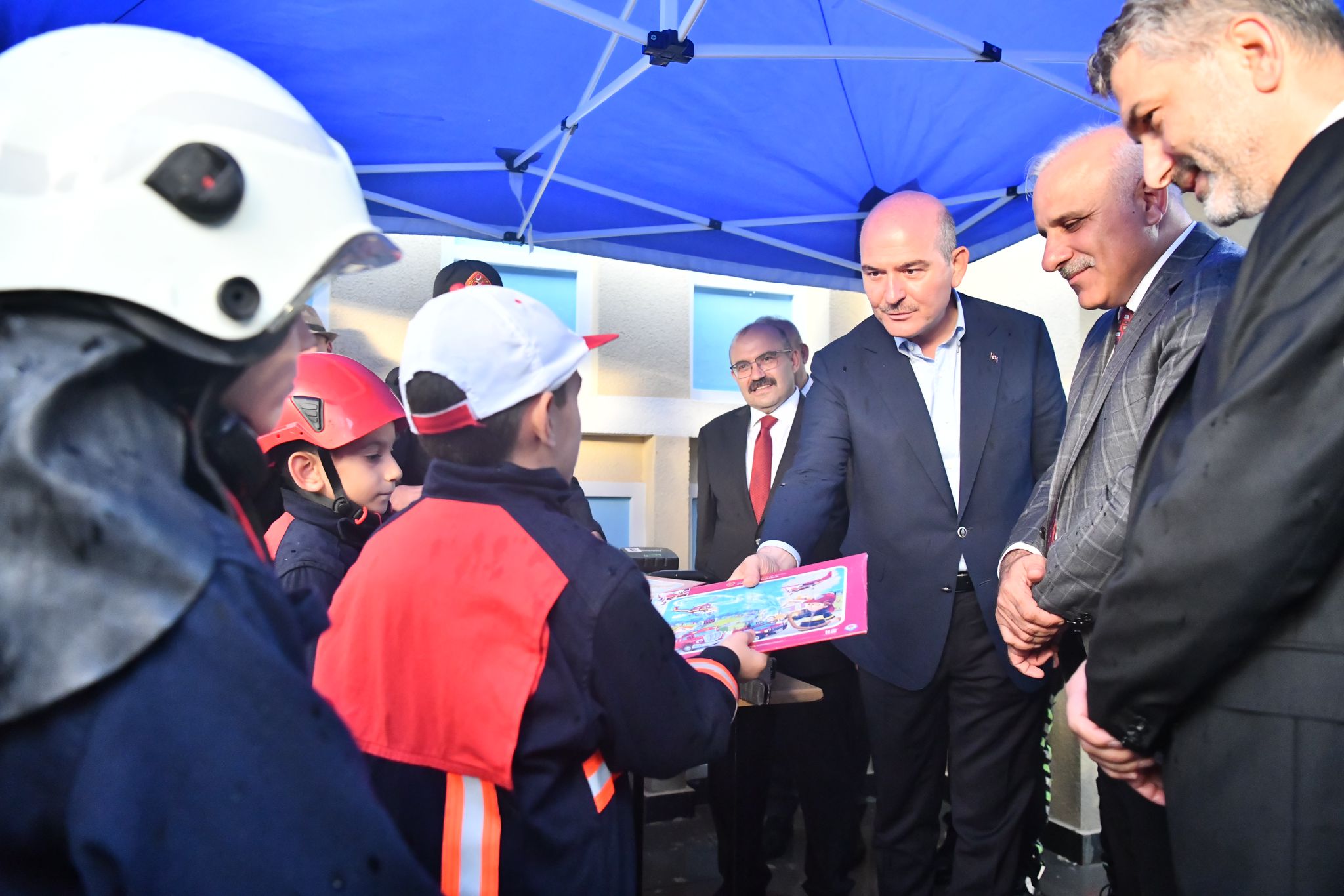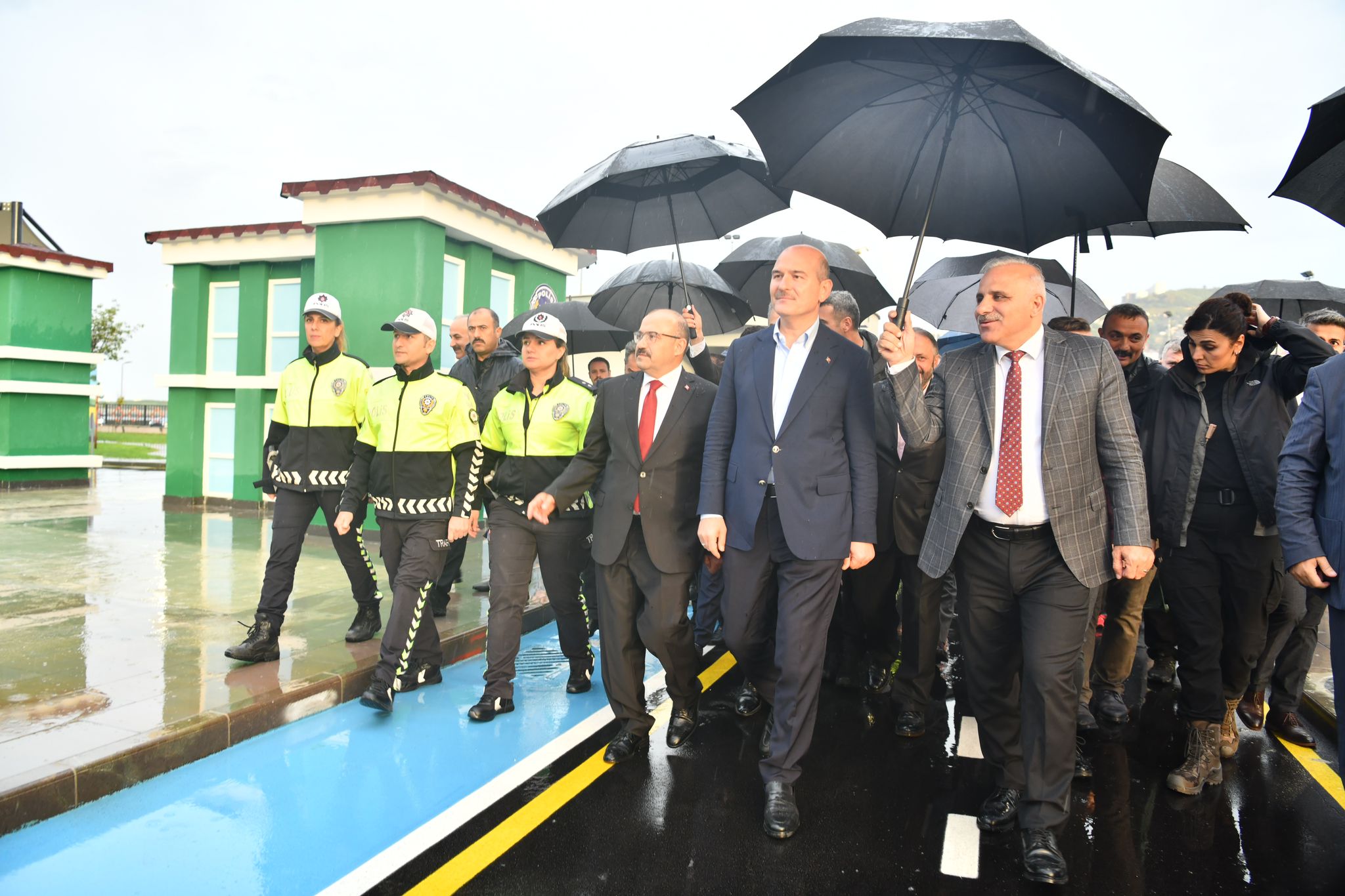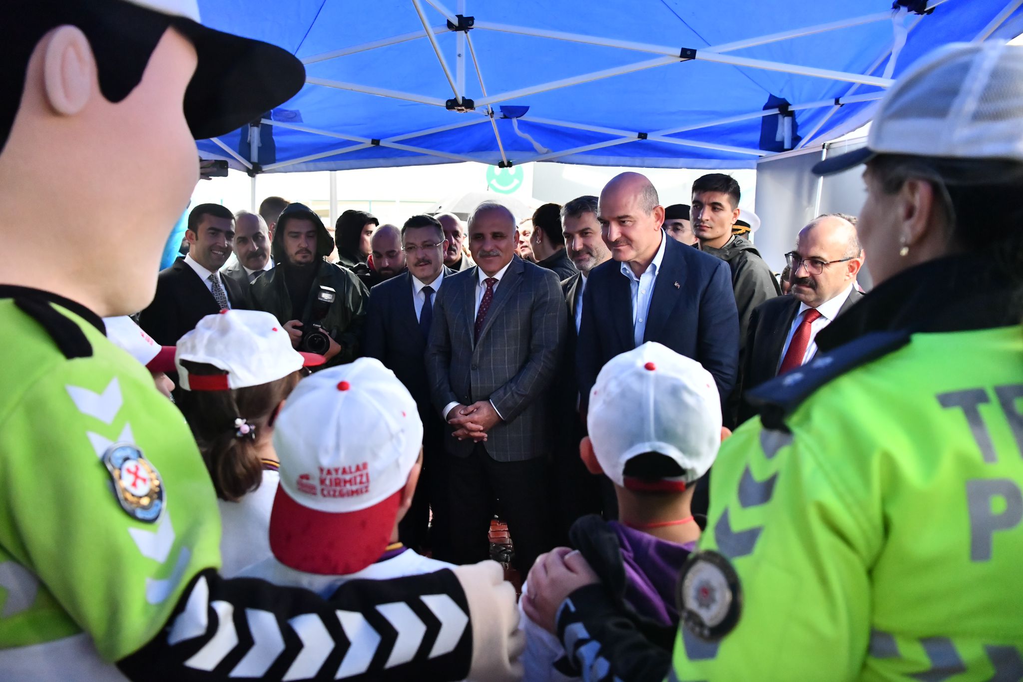 İçişleri Bakanı Süleyman Soylu ve Büyükşehir Belediye Başkanı Murat Zorluoğlu, Çocuk Trafik Eğitim Pisti’nde eğitim gören çocuklarla bir araya gelerek kısa süren sohbetler gerçekleştirdiler. Projeyi oldukça beğendiğini dile getiren Bakan Soylu, “Çocuk Trafik Eğitim Pisti Projesi, Trabzon Büyükşehir Belediyemiz tarafından hayata geçirildi. Diyebilirim ki şu ana kadar gördüğüm en iyi pistler arasında. Büyükşehir Belediye Başkanımız Murat Zorluoğlu’na ve emeği geçenlere bu titiz çalışma nedeniyle teşekkür ediyorum” ifadelerini kullandı.