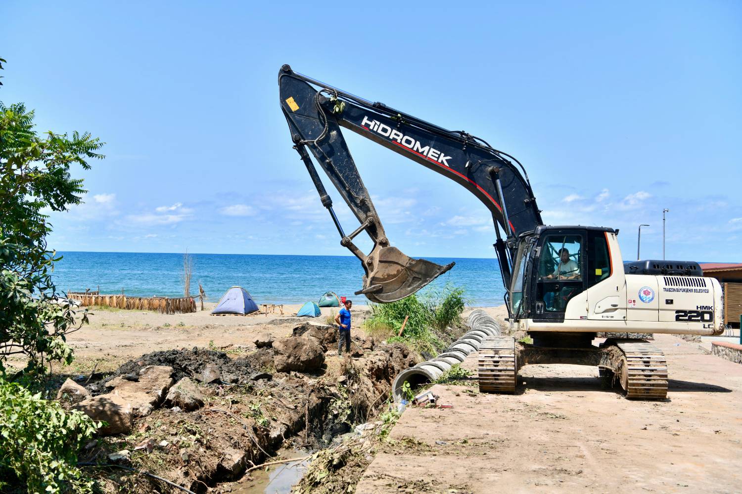 Trabzon Büyükşehir Belediyesi Çevre Koruma ve Kontrol Dairesi Başkanlığı ekipleri, hava sıcaklıklarının artmasıyla birlikte vatandaşların yoğun ilgi gösterdiği, kıyılar, plajlar, sahiller ve yürüyüş yollarında çalışmalarını hızlandırdı. Büyükşehir Belediye Başkanı Ahmet Metin Genç’in talimatları doğrultusunda Ortahisar ilçesi Yalıncak Mahallesi'nde bulunan Yalıncak Plajı'nda yoğun bir temizlik faaliyeti gerçekleştiriliyor. İş makineleriyle yapılan çalışmalar kapsamında kıyılarda yüze çıkan yosunlar temizlenirken Trabzon İçmesuyu ve Kanalizasyon İdaresi (TİSKİ) Genel Müdürlüğü tarafından plaj bölgesinde bulunan akarda kanal uygulaması gerçekleştirildi. Bütün bu çalışmalarla vatandaşların daha sağlıklı ve hijyenik ortamlarda vakit geçirmesi sağlanırken, plajlar denize girilebilir hale getiriliyor.