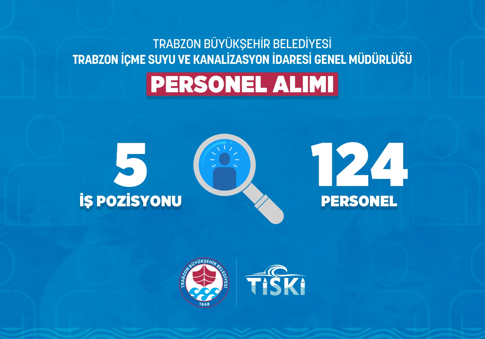 Trabzon Büyükşehir Belediyesi TİSKİ Genel Müdürlüğü 5 ayrı iş pozisyonunda 124 personel alımı ile bünyesine yeni personeller dahil ediyor. TİSKİ Genel Müdürlüğü TRABSU AŞ. bünyesinde istihdam edilmek üzere; 2 makine teknisyeni, 3 elektrik teknisyeni, 7 operatör, 16 şoför ve 96 beden işçisi iş pozisyonunda toplam 124 işçi alımı gerçekleştirilecek. İş pozisyonuna başvuracak olan adaylardan en az 2 yıldır Trabzon’da ikamet etme şartı aranacak.