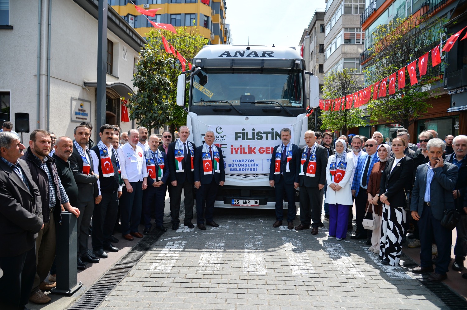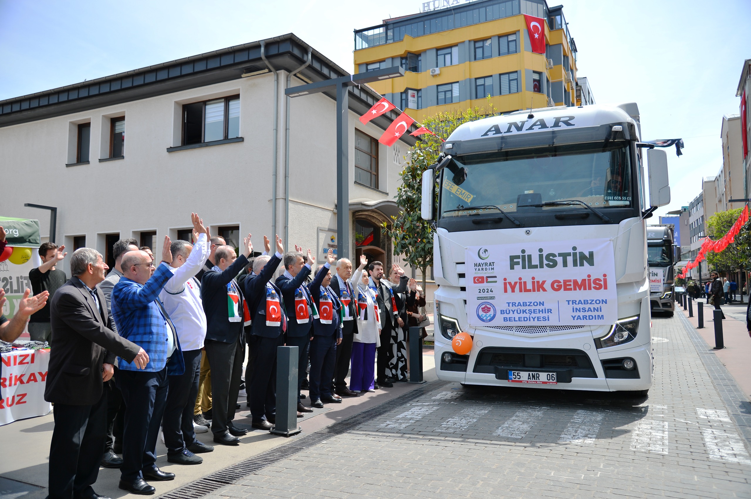 Trabzon Büyükşehir Belediyesi, gönüllere dokunan bir projeye imza attı. Hayrat Vakfı ve Trabzon Büyükşehir Belediyesi iş birliğiyle 3 tır yardım malzemesi insanlık dramının yaşandığı Filistin’e gönderildi.