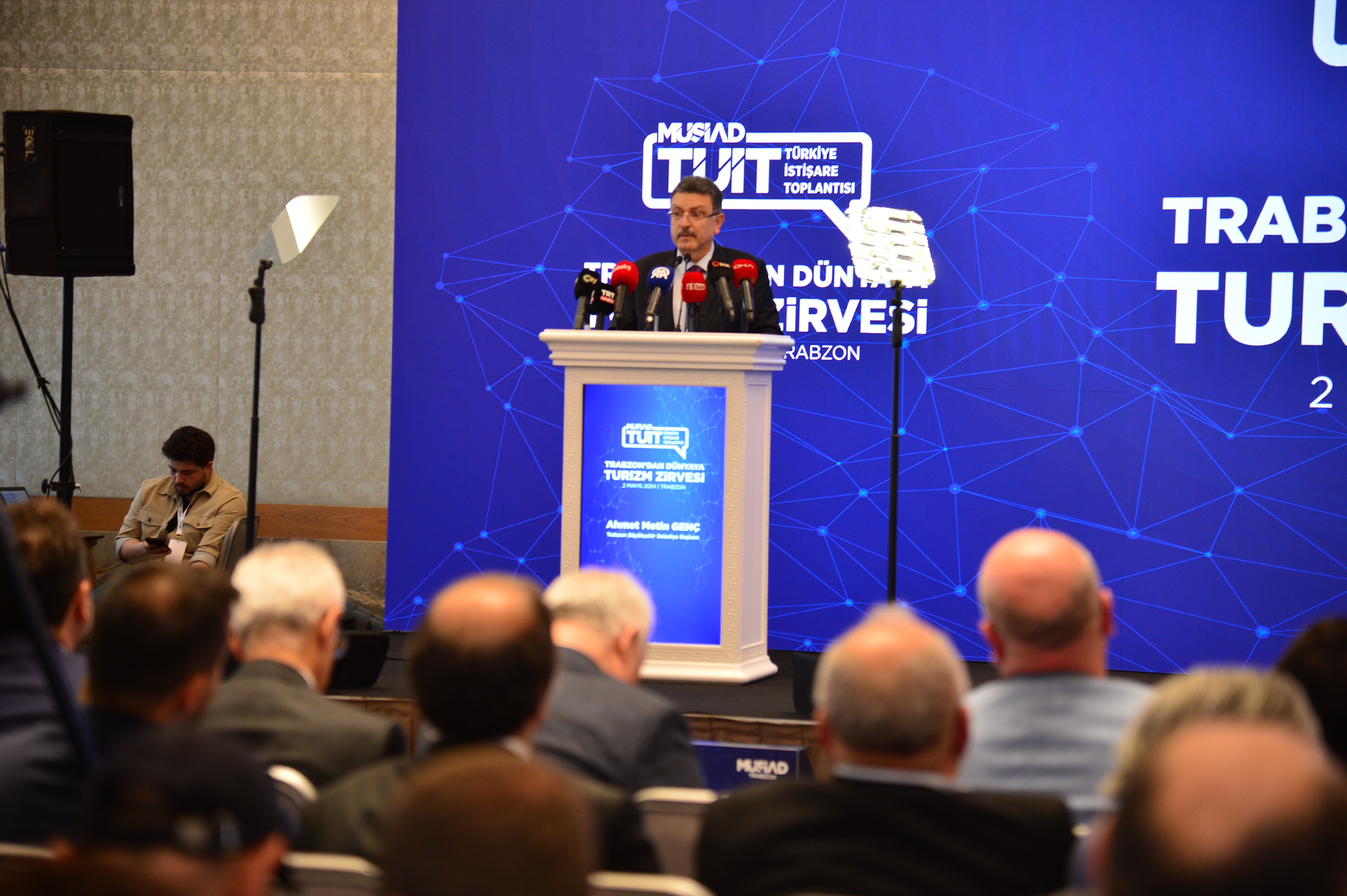 Turizm toplantılarının şehir adına her zaman çok önemli olduğunu belirten Büyükşehir Belediye Başkanı Ahmet Metin Genç, “Bu programa emek veren herkese teşekkür etmek istiyorum. Trabzon'da turizmi konuşuyoruz. Trabzon'dan dünyaya turizm başlığıyla konuşuyoruz. Dünyaya bütün içeriği zengin alanlarıyla beraber hitap edecek kadar bir turizm şehridir Trabzon. O nedenle bu başlık için ayrıca tebrik ediyorum. Böyle geniş bir perspektifle bir başlığı, bir anlayışı ortaya koyduktan sonra o başlığın altlıkları için de çok zengin çalışmalar yapmak lazım. Trabzon'umuzun öne çıkan alametifarikaları vardır. Trabzon, yeşiliyle, deniziyle, tarihiyle, kültürüyle, sanatıyla, sporuyla, ticaretiyle birçok yönleriyle tebarüz eden bir şehirdir. Bu yönlerimizi daha çok ortaya çıkarmak ve gelişen trendimizin turizm olması hasebiyle bu işin altlıklarını iyi hazırlamak lazım. Tarım şehri olan Trabzon'umuzda fındığın Trabzonlu tarım üreticisine getirisi 126 milyon dolar iken geçen yıl sadece turizmden doğrudan ya da dolaylı olarak bu şehre giren para 1 milyar 76 milyon dolardır” dedi.