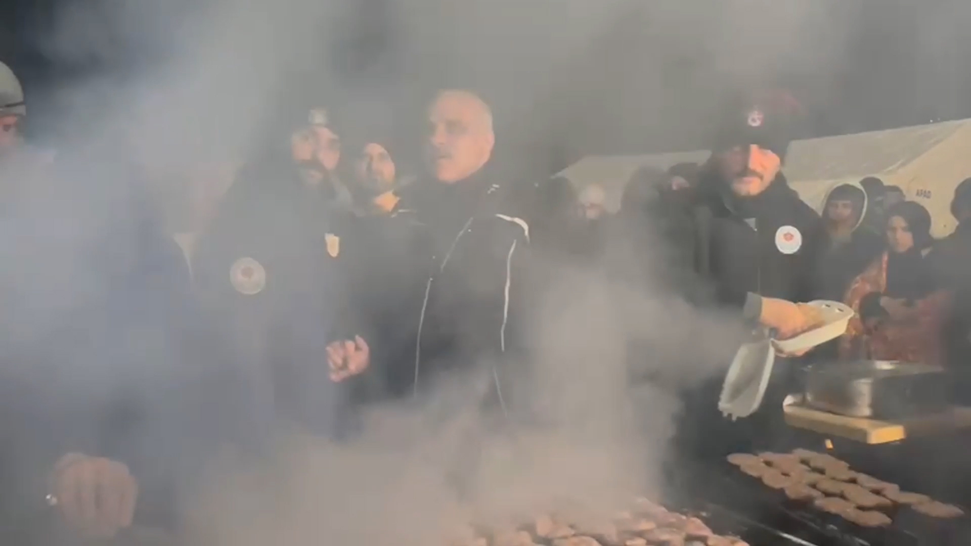 Trabzon Büyükşehir Belediyesi iştirakleri arasında yer alan TRABİTAŞ ekipleri, Kahramanmaraş merkezde 3 gündür depremzedelere büyük mangallarda pişirerek köfte ekmek ve ayran ikramında bulunuyor. Şu ana kadar yüzlerce depremzedeye 4 tona yakın köfte ikramı yapıldı.