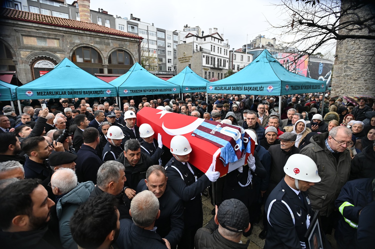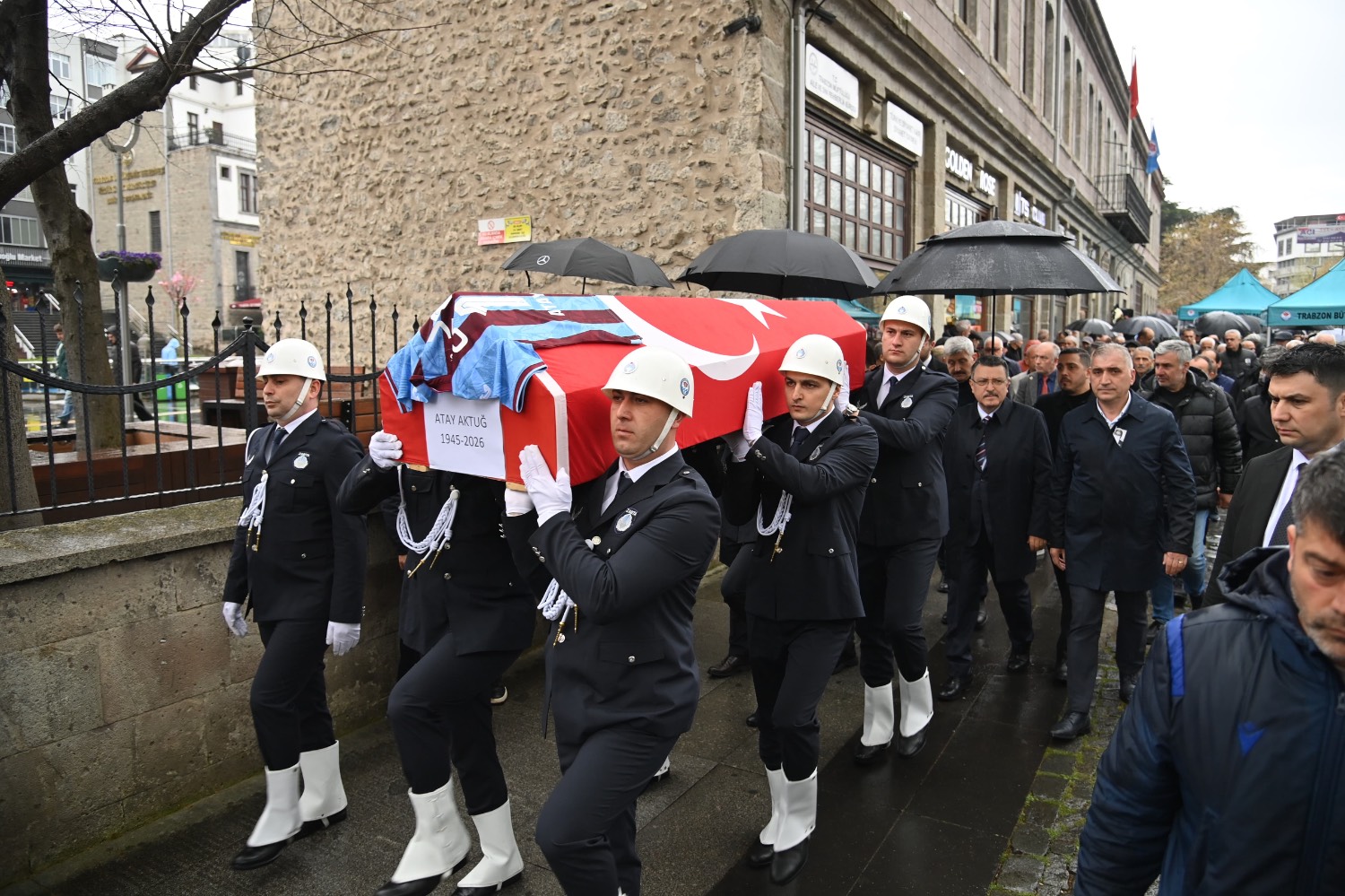 Hayatını kaybeden Trabzonspor ve Trabzon Belediyesi eski başkanlarından Atay Aktuğ için, Trabzon Büyükşehir Belediyesi’nin Meydan’daki tarihi binası önünde tören düzenlendi.