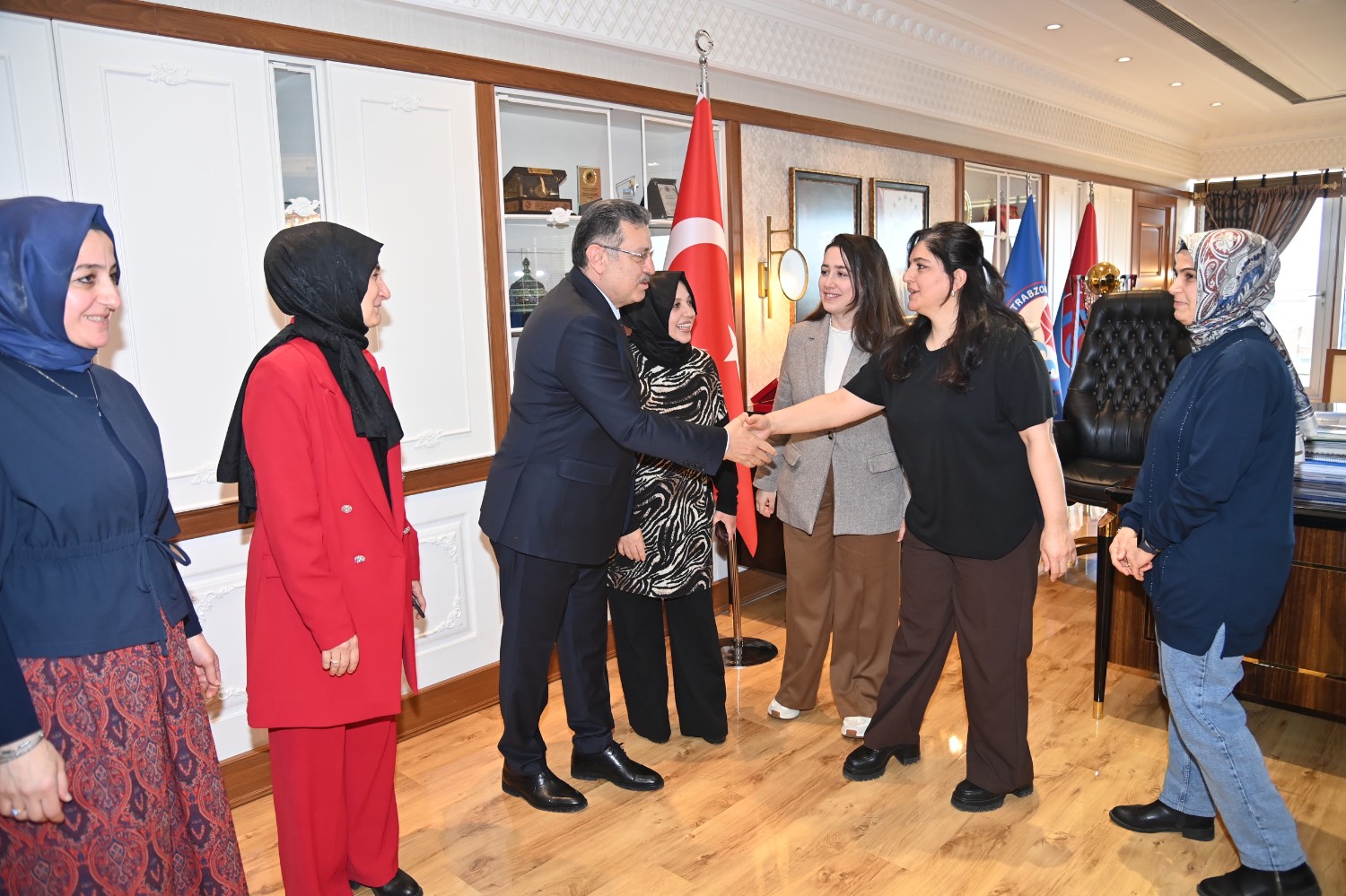 Trabzon Büyükşehir Belediye Başkanı Ahmet Metin Genç, Ramazan Bayramı öncesinde belediye personeli ile bir araya gelerek bayram sevincini paylaştı. Başkanlık makamında personel ile tek tek bayramlaşan Başkan Genç, günün anısına herkesle fotoğraf çektirdi.