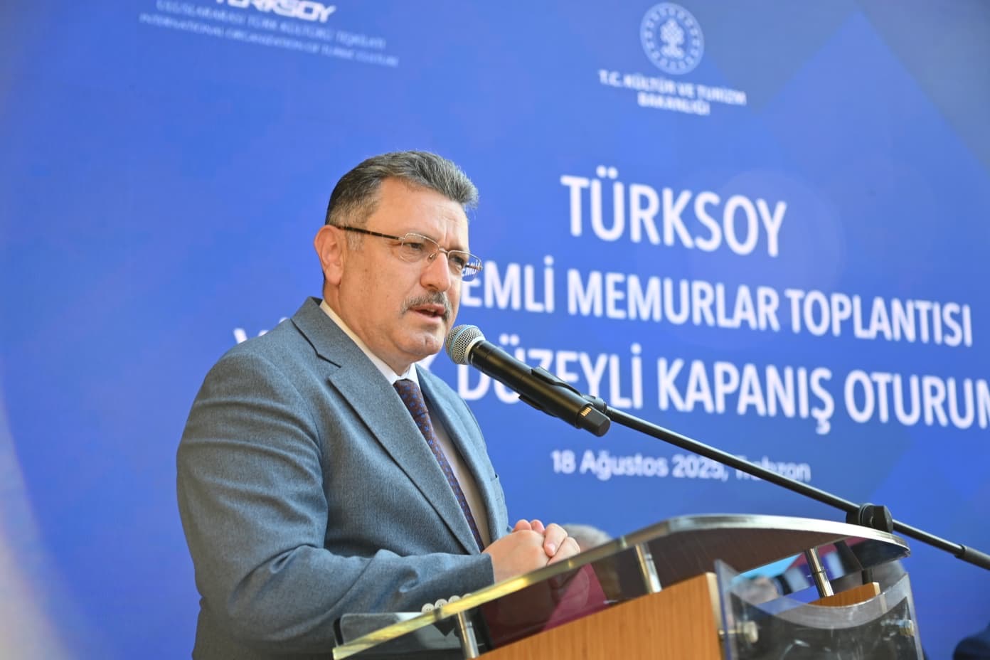 “Biliyoruz ki, dünyada Türk'ün izine rastlanmayacak hiçbir yer yoktur" diyen Başkan Genç, konuşmasını şöyle tamamladı: ."Asya'nın bozkırlarından Avrupa'nın saraylarına, Orta Doğu'nun kadim şehirlerinden Afrika ve Amerika kıtalarına kadar, Türk'ün izi tarihin her sayfasında ve dünyanın her köşesinde kendini hissettirir. Bu yaygınlık ve etkinlik, Türk dünyasının geçmişte olduğu kadar bugün ve gelecekte de küresel sahnede güçlü bir aktör olduğunu açıkça göstermektedir. Benim inancım şu ki; bugün dünyanın, Türklerin köklü medeniyet anlayışına her zamankinden daha fazla ihtiyacı vardır. Barışa, adalete, kültürel zenginliğe ve hoşgörüye dayalı bu miras, sadece Türk dünyasının değil, tüm insanlığın geleceği için büyük bir rehber niteliği taşımaktadır. Bizler, 21. yüzyılın, Türklerin yüzyılı olacağına yürekten inanıyoruz ve bu inançla kültürümüzü, değerlerimizi ve birikimimizi dünyaya taşımaya kararlılıkla devam ediyoruz. Kıdemli Memurlar Toplantımız kapsamında şehrimizde gerçekleştirdiğimiz görüşmelerin de ortak kültürel mirasımızın korunması, sanatçılarımızın ve kültür insanlarımızın desteklenmesi açısından önemli sonuçlar doğuracağına inanıyorum. Bu çalışmalar, genç nesillerin de ortak tarih ve kimlik bilinciyle yetişmesine de büyük katkı sağlayacaktır. Kültür, sadece geçmişin hatırası değil, geleceğin inşasında da en güçlü harçtır. Hep birlikte ortaya koyacağımız fikirler ve iş birlikleri, bu harcı daha da sağlamlaştıracaktır.