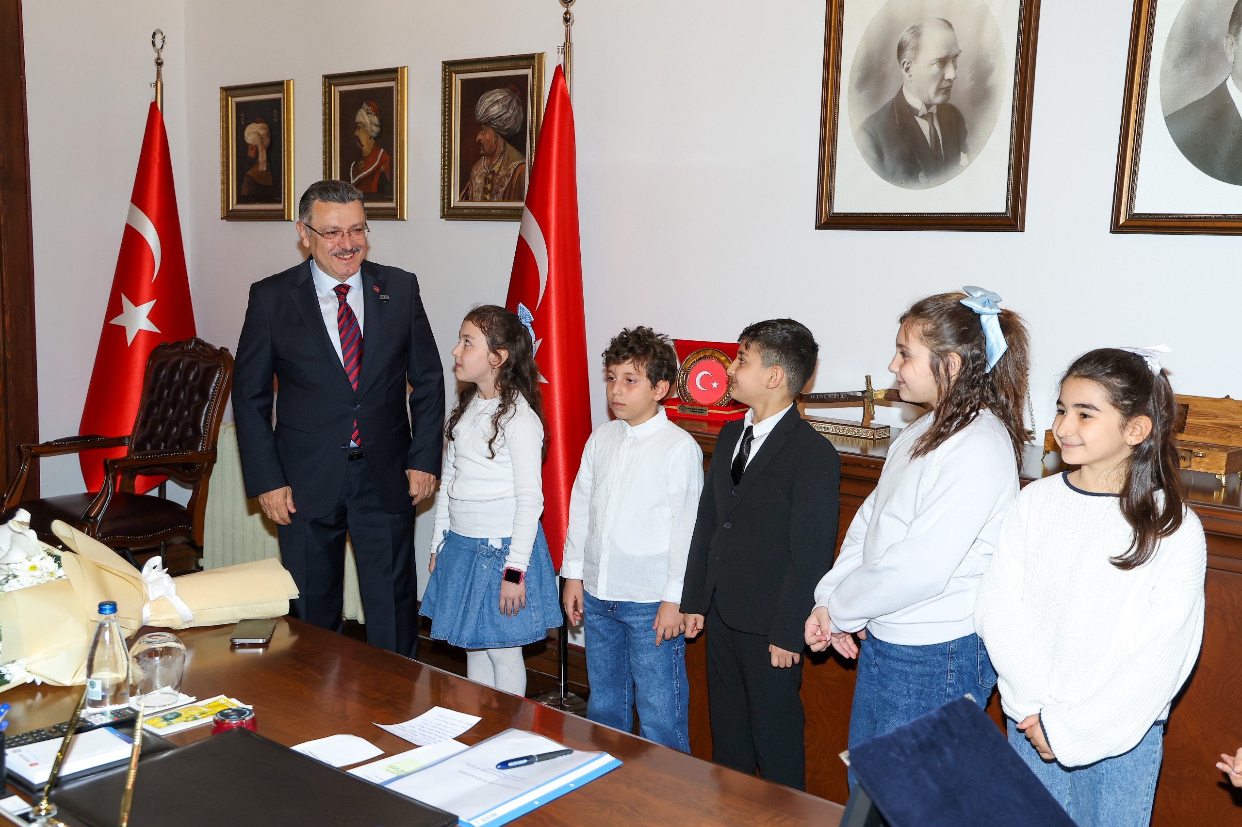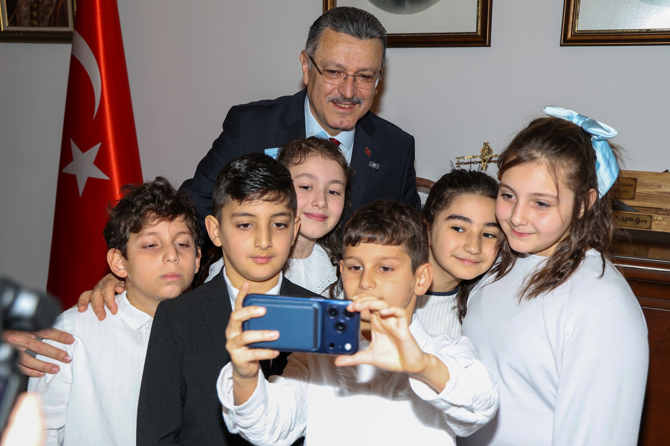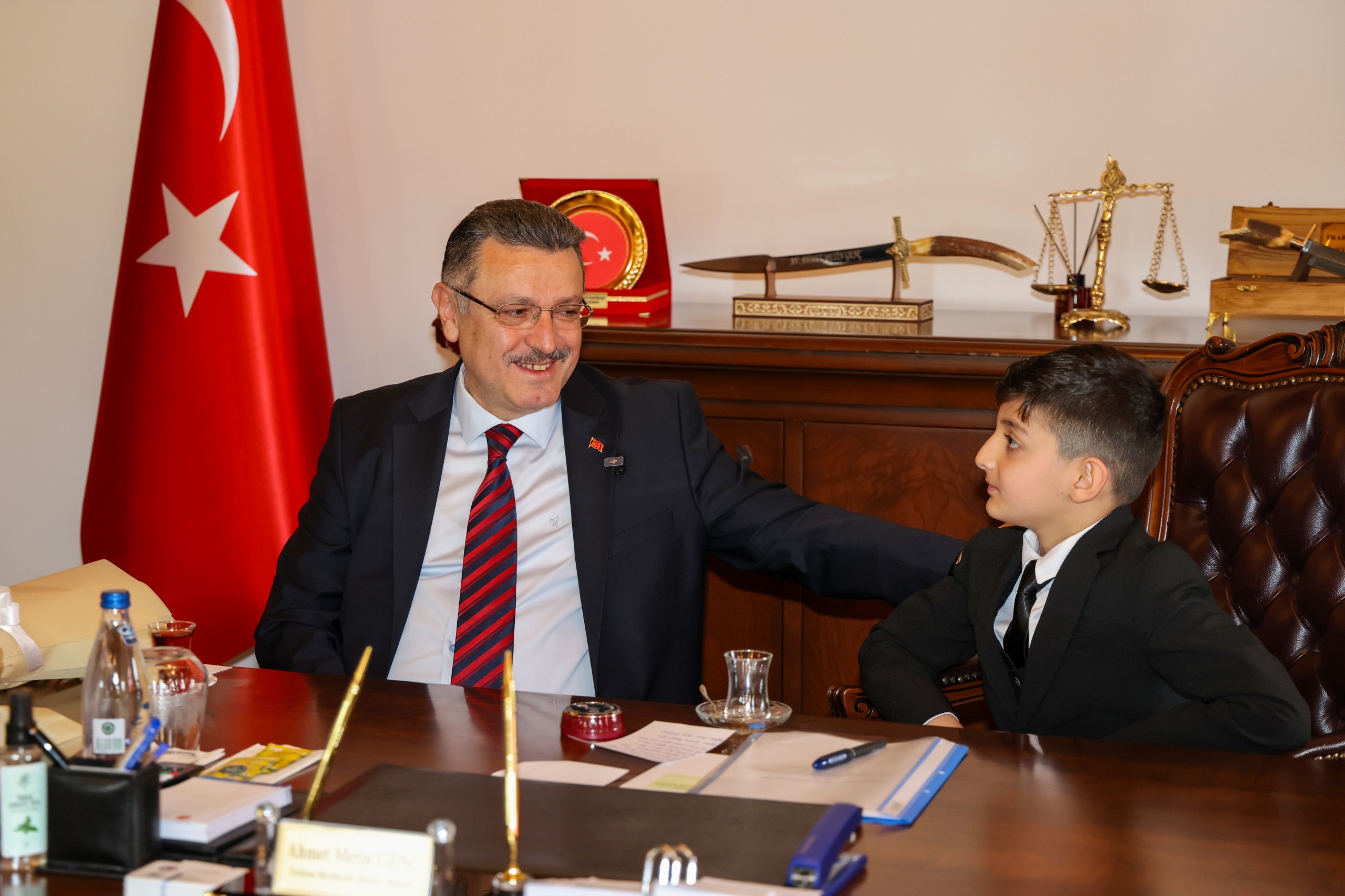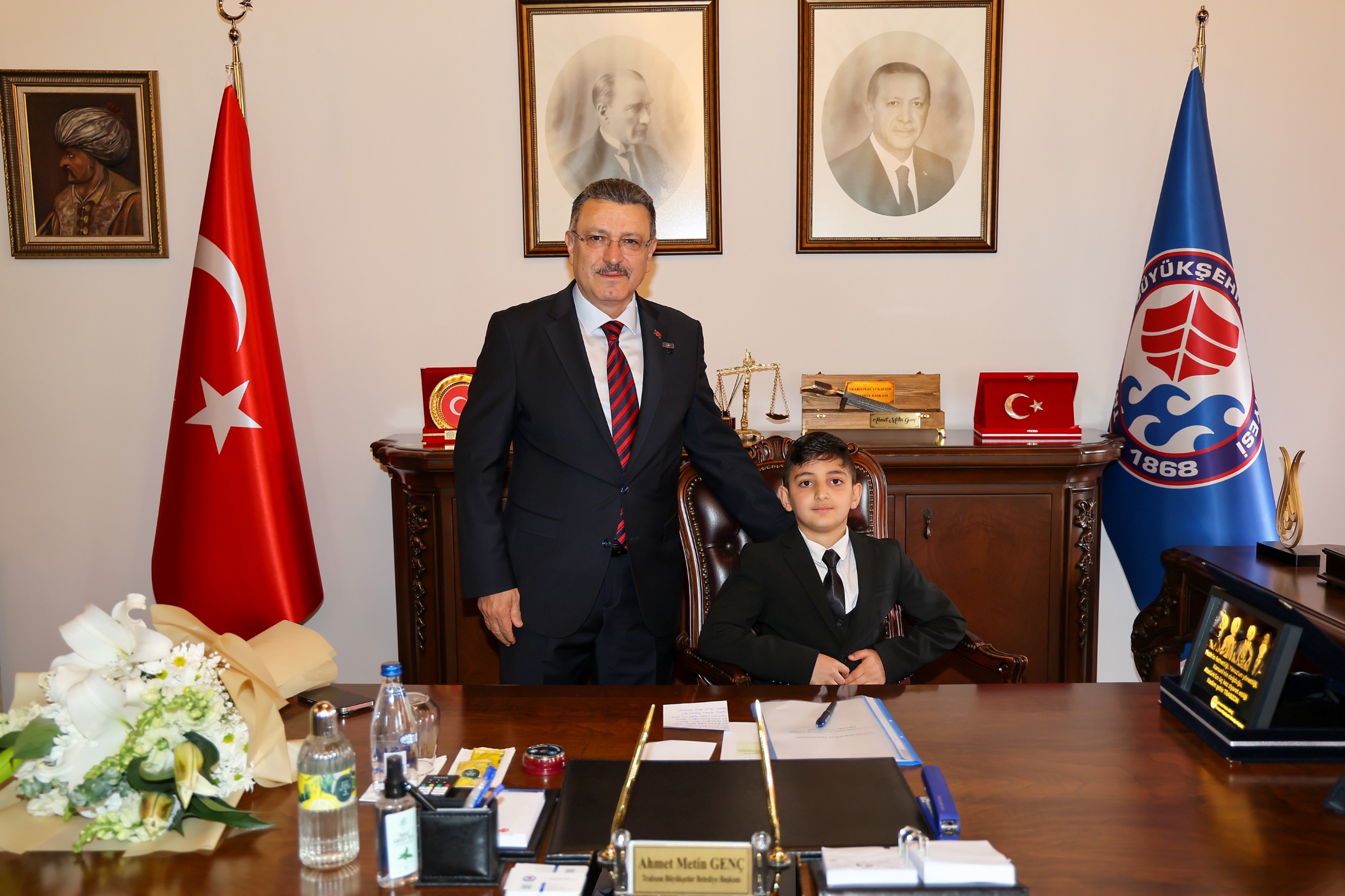 Trabzon Büyükşehir Belediye Başkanı Ahmet Metin Genç, 23 Nisan Ulusal Egemenlik ve Çocuk Bayramı kapsamında makam koltuğunu temsili olarak Dumlupınar İlkokulu 3-B sınıfı öğrencisi Hamza Arslan’a devretti. Büyükşehir Belediyesi’nde düzenlenen programa Hamza’nın yanı sıra sınıf arkadaşları da katıldı.
