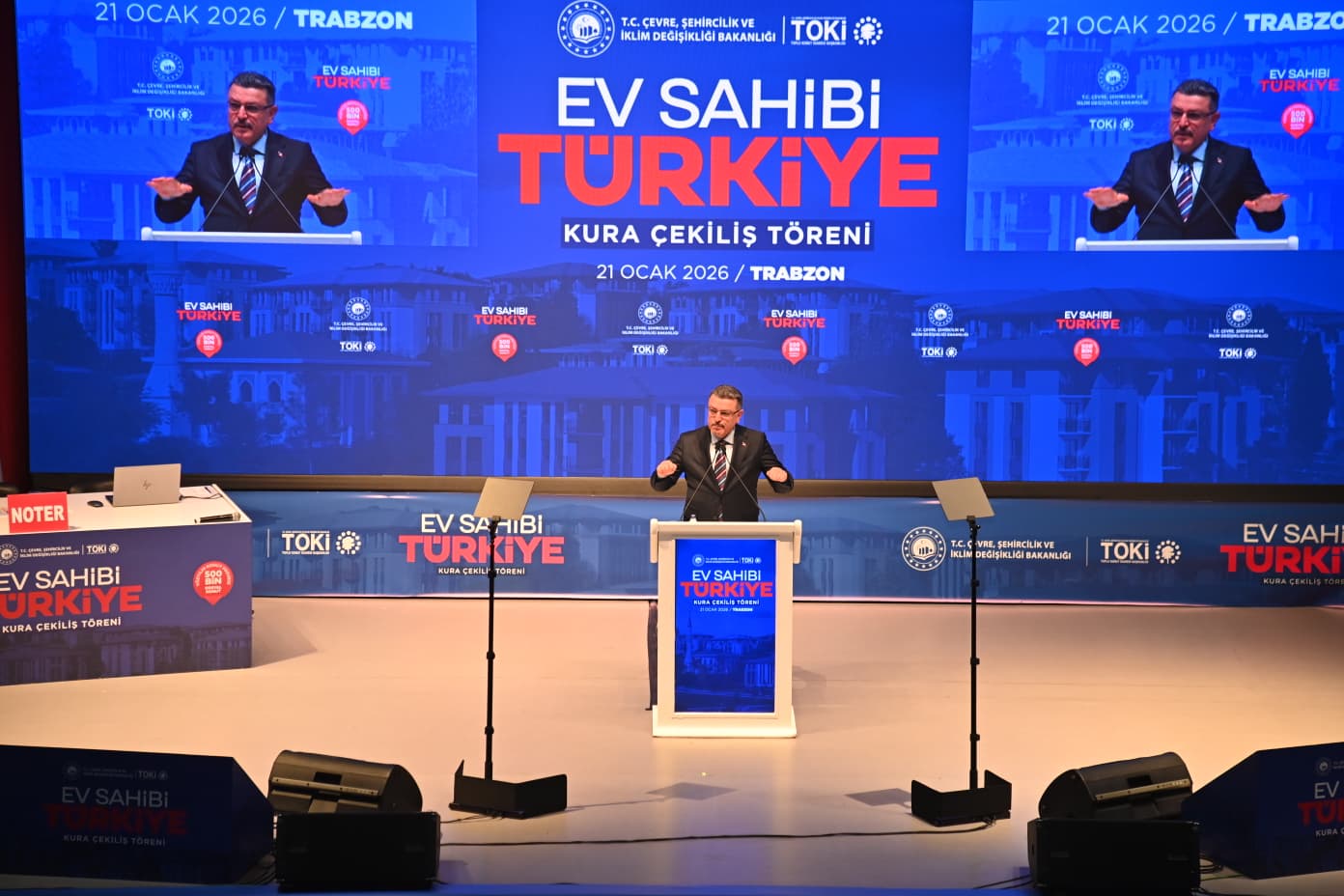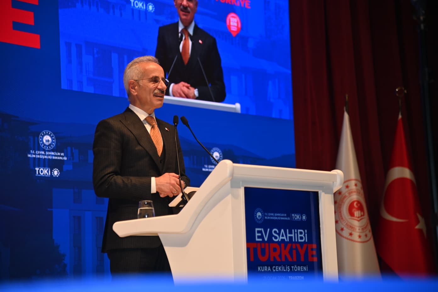 Ulaştırma ve Altyapı Bakanı Abdulkadir Uraloğlu, “Bugün burada, Cumhurbaşkanımız Sayın Recep Tayyip Erdoğan'ın liderliğinde hayata geçirilen 'Ev Sahibi Türkiye' vizyonuyla, Türkiye tarihinin en büyük sosyal konut seferberliğinin bir parçası olarak bulunuyoruz. Trabzon’a TOKİ tarafından güncel rakamlarla yaklaşık 66,2 milyar liralık yatırım yapıldı. Şimdi hak sahipleri belirlenecek 3 bin 734 sosyal konutun 2027 yılının sonuna kadar bitirilmesi hedefleniyor. Evleriniz şimdiden hayırlı olsun" dedi.