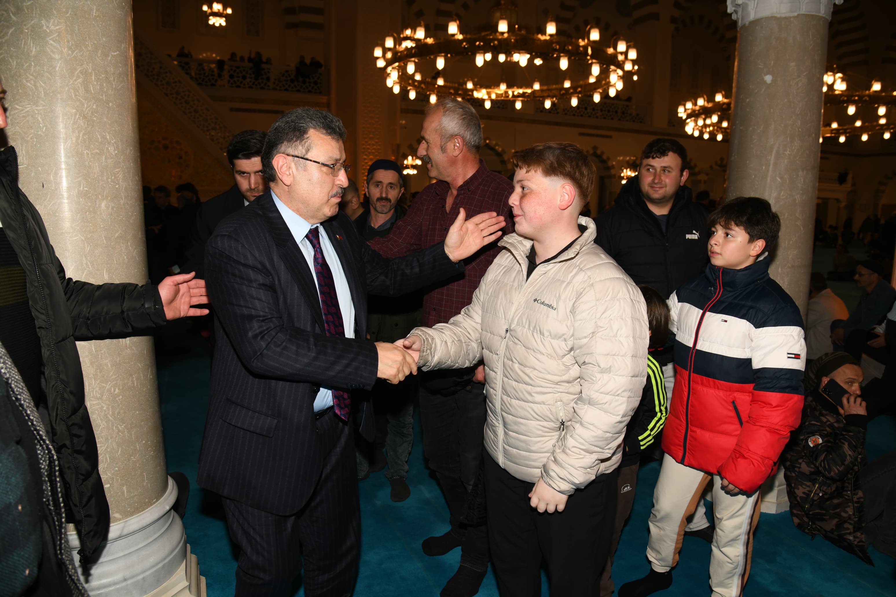 Trabzon Büyükşehir Belediye Başkanı Ahmet Metin Genç, Trabzon Valisi Tahir Şahin ile birlikte Kadir gecesi dolayısıyla Hanife Hatun Camii’nde düzenlenen programda vatandaşlarla bir araya geldi. Büyükşehir Belediyesi Sosyal Hizmetler Dairesi Başkanlığı tarafından yatsı namazının ardından cami avlusunda gerçekleştirilen programda protokol üyeleri, vatandaşlara kandil simidi ikramında bulundu.