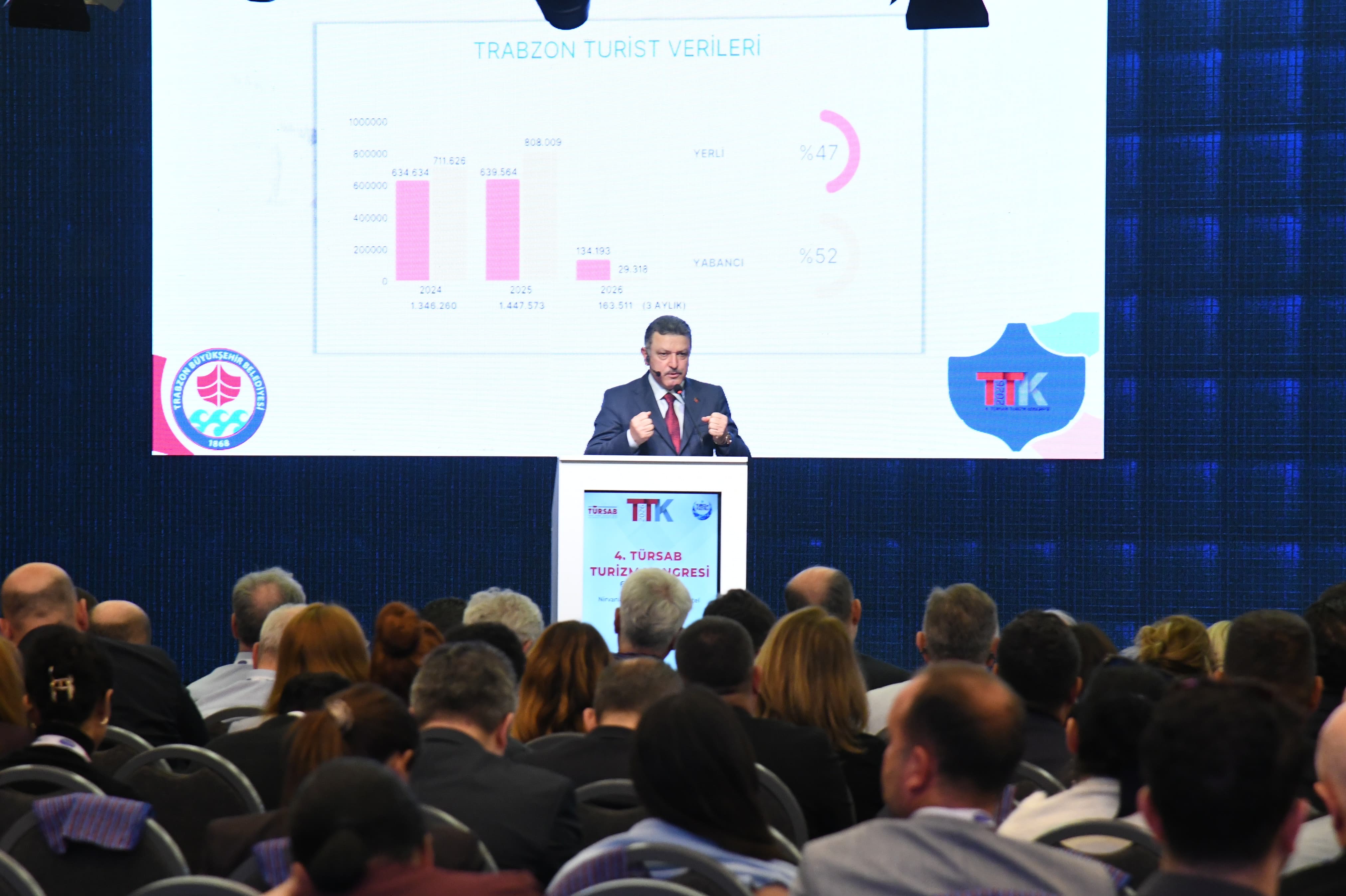 Trabzon Büyükşehir Belediye Başkanı Ahmet Metin Genç, ‘Eğitim, İletişim ve Dayanışma’ mottosuyla Antalya’da bu yıl 4’üncüsü düzenlenen TÜRSAB Turizm Kongresi’ne katıldı. Kongre kapsamında gerçekleştirilen ve Düzce Belediye Başkanı Faruk Özlü’nün moderatörlüğünü yaptığı “Bölgesel Turizmin Gelişimi, Tanıtım ve Pazarlamada Yerel Yaklaşımlar” başlıklı programda Başkan Genç, Gaziantep Büyükşehir Belediye Başkanı Fatma Şahin ve Safranbolu Belediye Başkanı Elif Köse konuşmacı olarak yer aldı. Programda konuşan Başkan Genç, turizmde yerel yönetimlerin rolüne dikkat çekerek, “Trabzon, eşsiz doğal güzellikleriyle yeşilin maviyle buluştuğu, tarihi medeniyetlerin iz bıraktığı, kültür ve sanatla yoğrulmuş bir şehirdir. Metrekaresine en fazla sanatçının düştüğü şehirlerden biri olarak, hem tarih ve kültürü hem de doğal güzellikleriyle turizm trendine hızla uyum sağlamaktadır. Trabzon Büyükşehir Belediye Başkanı olarak görevlerim sadece altyapı ve belediyecilik hizmetleriyle sınırlı değildir; aynı zamanda şehrimizin ekonomisini, istihdamını ve yatırım potansiyelini de dikkate almak zorundayım. Bu bağlamda turizm, şehrimizin stratejik önceliklerinden biridir” dedi.