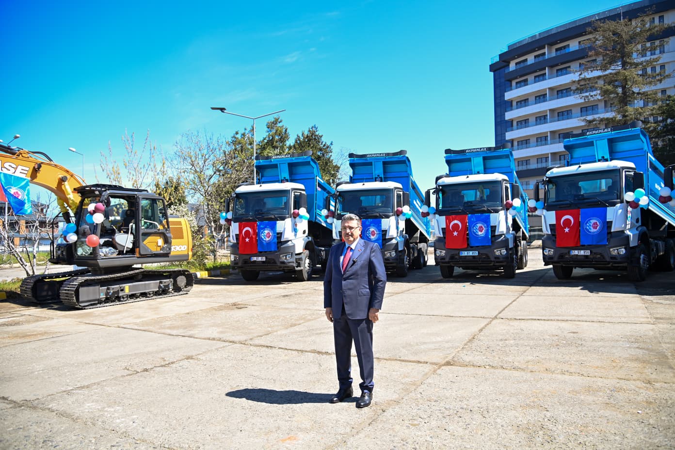 Trabzon Büyükşehir Belediyesi, araç filosunu güçlendirmeye devam ediyor. Toplam 46 milyon 500 bin TL'lik yatırımla filoya kazandırılan 5 yeni kamyon ve 1 iş makinesi, Büyükşehir Belediye Başkanı Ahmet Metin Genç’in katıldığı törenle hizmete alındı. Trabzon’un geniş ve zorlu bir yol ağına sahip olduğuna dikkat çeken Başkan Genç, “22 bin kilometrelik yol ağımızın 20 bin kilometresi büyükşehir ve ilçe belediyelerimizin sorumluluğunda. Bu da altyapı anlamında ciddi bir yük getiriyor. Yol yapımı, asfalt serimi, beton yol uygulamaları ve sanat yapıları çalışmalarımız aralıksız sürüyor. Yaptığımız yollar kadar sanat yapılarına da önemli maliyetler ayırıyoruz” ifadelerini kullandı.