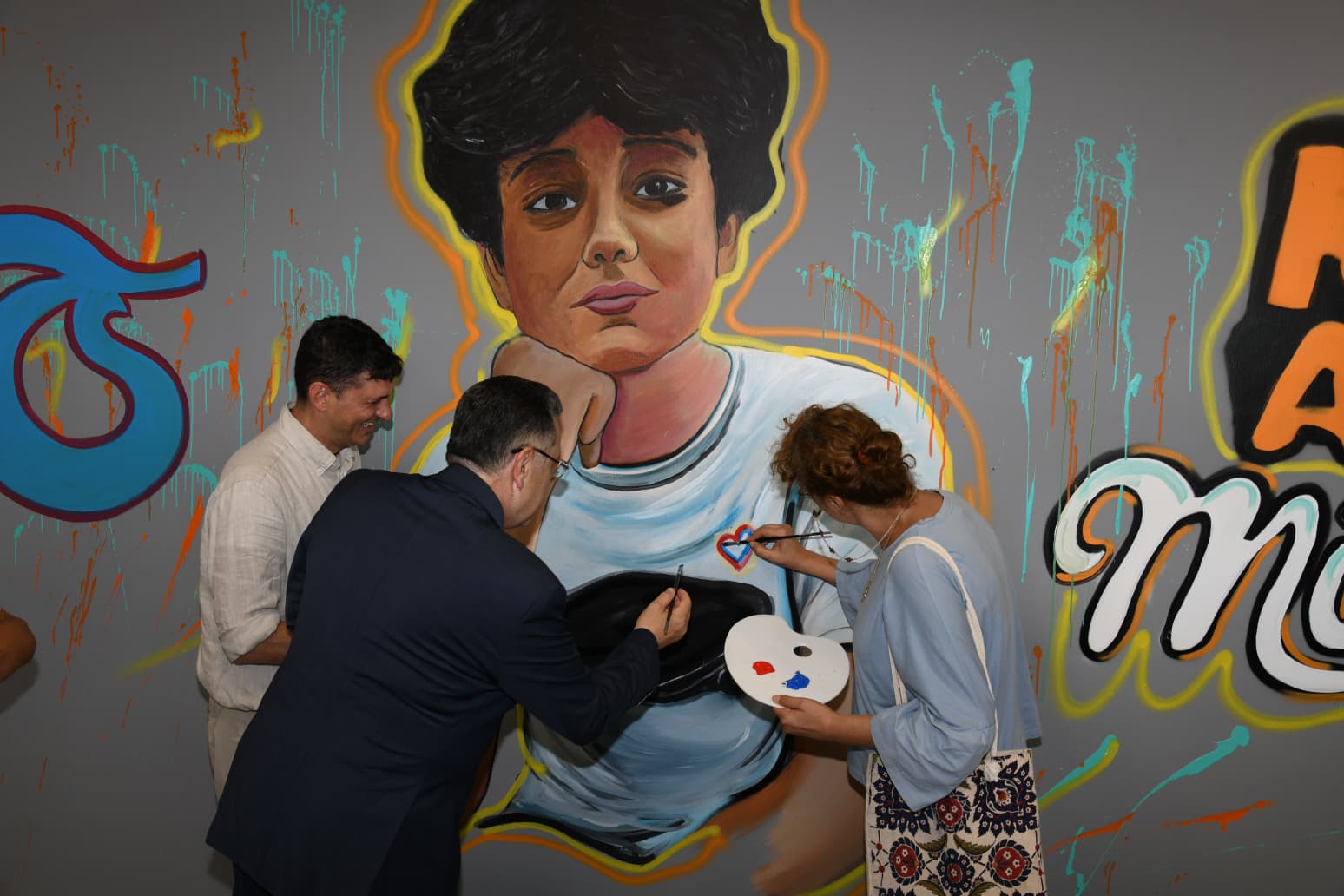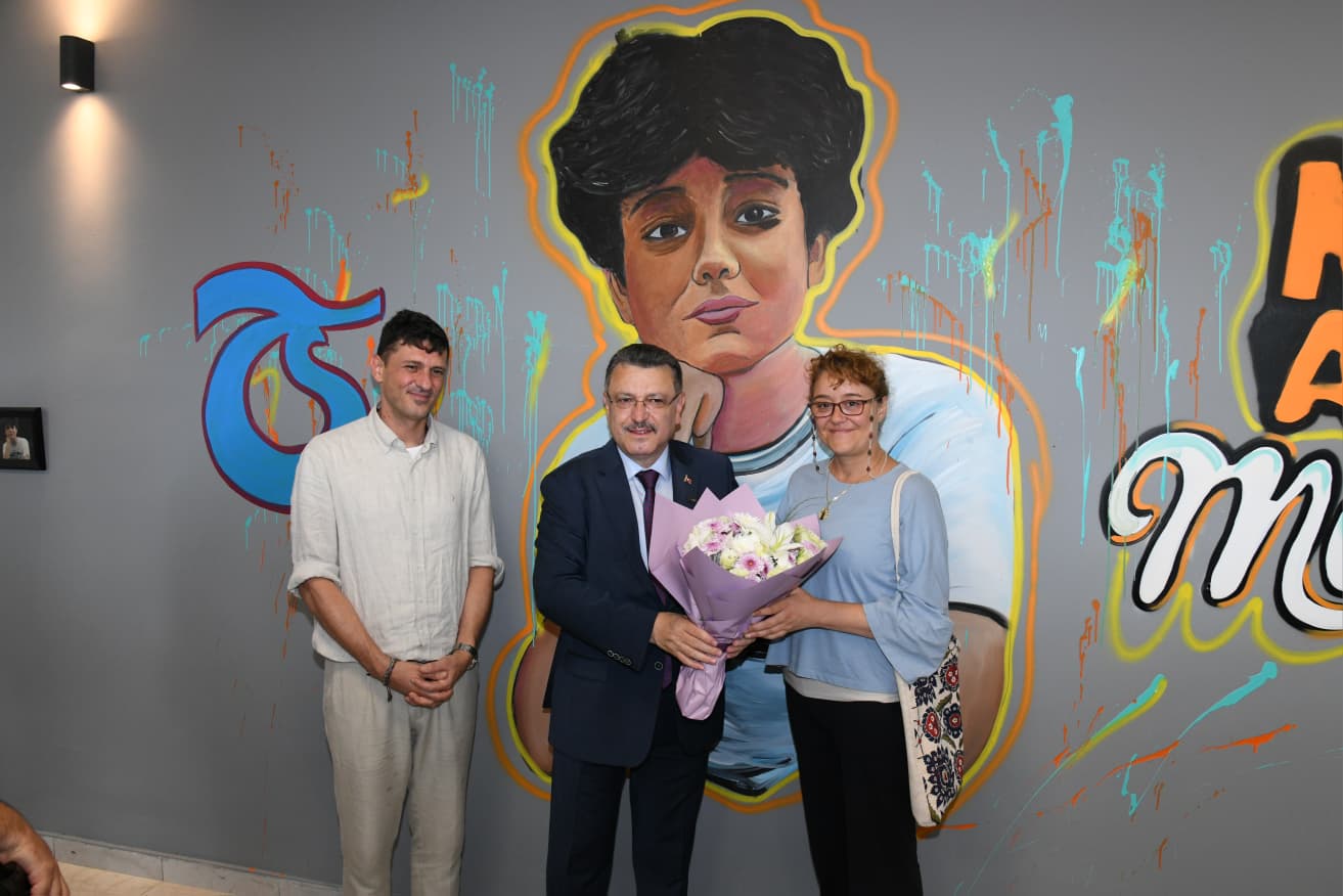 Anne Yasemin Akıncılar, “En başından beri her zaman yanımızda olan başkanımıza teşekkür ediyorum. Bize çok güzel bir sürpriz oldu. Burada çok duygulandık. Trabzon ev sahipliği yaptı. Başkanımız İstanbul’a kadar geldi, buluştuk. Böyle bir şey beklemiyordum, çok mutlu oldum. Ahmet Trabzon’u çok seviyordu. Her yaz buraya geliyordu, köy ortamını seviyordu” diye konuştu. Baba Andrea Minguzzi ise, sürprizin kendilerini duygulandırdığını belirterek, “Şoktayım, çok güzel bir yer, başkanımız sağ olsun. Şiddeti önlemek için spor ve eğitim çok önemli. Şu anda oğlum Ahmet ışık olacak. Hayırlı olsun” şeklinde konuştu. Daha sonra Ressam Yıldıray Yıldırım’ın, Çocuk Trafik Eğitim Merkezi içerisinde yer alan kafeterya bölümünde yaptığı Mattia Ahmet Minguzzi grafiti çalışması üzerine çizilen kalp Başkan Genç, Anne Yasemin Akıncılar ve Baba Andrea Minguzzi tarafından boyandı.