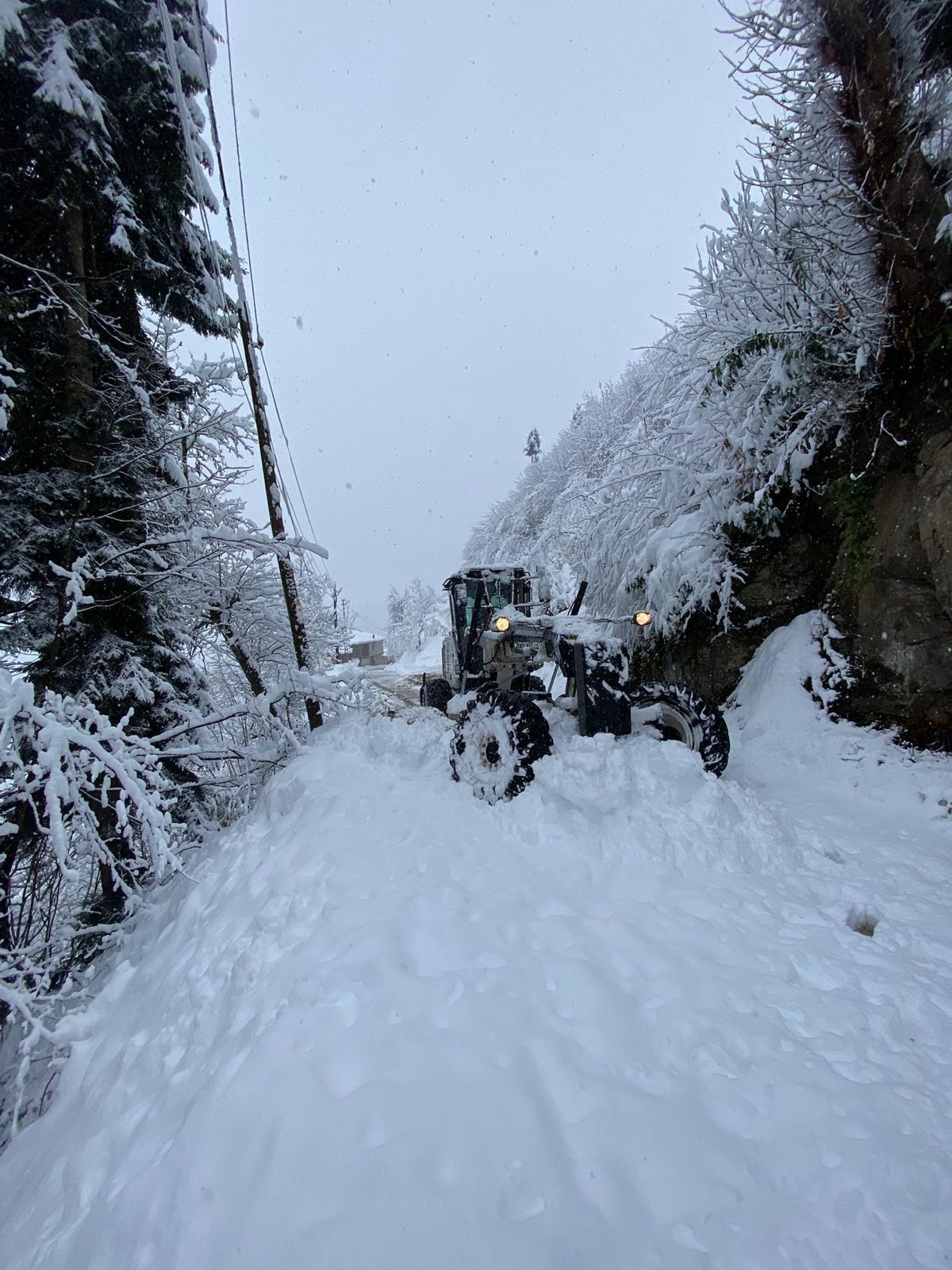 Şehrin yüksek kesimlerinde etkili olan kar yağışının ardından kapalı mahalle yollarını açmak için harekete geçen Trabzon Büyükşehir Belediyesi ekipleri, ulaşımın aksamaması için yoğun bir çalışma yürütüyor.