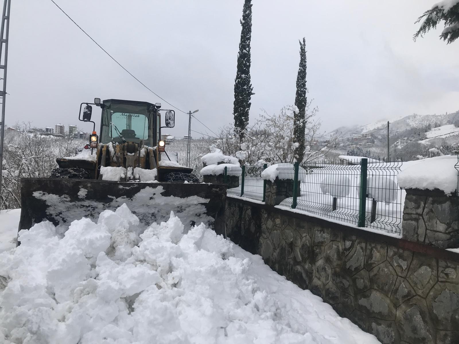 Trabzon Büyükşehir Belediyesi ekipleri karla mücadele çalışmalarını yoğun bir tempo ile sürdürüyor. Şehir genelinde ulaşıma kapanan 148 mahalle yolunu açma çalışmaları, Yol Yapım Bakım ve Onarım Dairesi ile Makine İkmal Bakım ve Onarım Dairesi Başkanlığı ekiplerince, ilçe belediyeleriyle koordineli şekilde sürüyor. Trabzon İçmesuyu ve Kanalizasyon İdaresi Genel Müdürlüğü (TİSKİ) ekipleri de, kar ve donmadan kaynaklı su arızalarını gidermek için 18 ilçenin tamamında 24 saat esasına göre görev yapıyor.