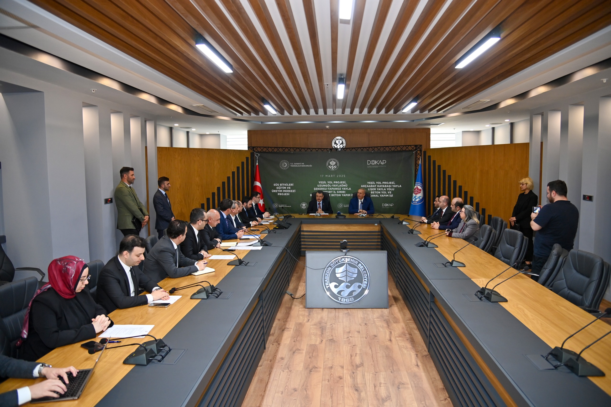 DOKAP Başkanı Hakan Gültekin ise Trabzon’un bölgedeki önemine vurgu yaparak, “Trabzon, bölgemizin en değerli şehirlerinden biri. Bir şehri marka haline getirmek, üretim, istihdam, eğitim, turizm ve ekonomik büyüme ile mümkündür. Trabzon önemli bir üretim merkezimiz. DOKAP olarak her zaman projelere destek sunduk. Büyükşehir Belediye Başkanımız Ahmet Metin Genç’in göreve gelmesiyle birlikte projelerimize daha da ağırlık verdik. Bu kapsamda 82 milyon TL’lik bir kaynak tahsis ettik. 2025 yılında uygulayacağımız projelerle ilgili değerlendirmelerimizi yaptık, 2026 yılı için ise turizm, Yeşil Yol, tarım ve hayvancılık alanlarında yeni çalışmalara başlamayı planlıyoruz” diye konuştu.