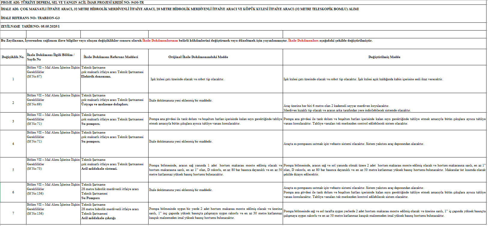 anılacaktır) “Trabzon Büyükşehir Belediyesi İtfaiye Kapasite Projesi” finansmanı