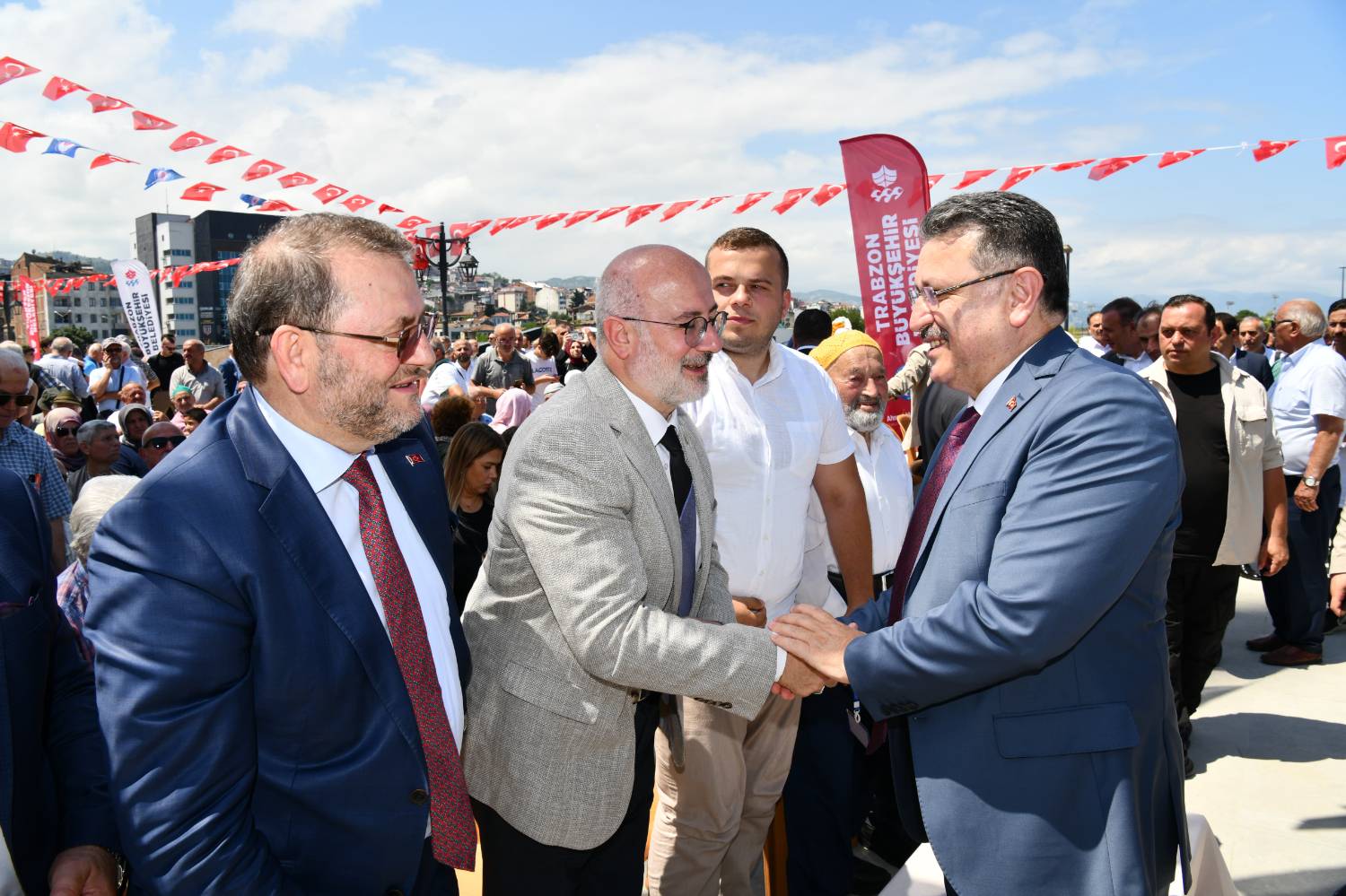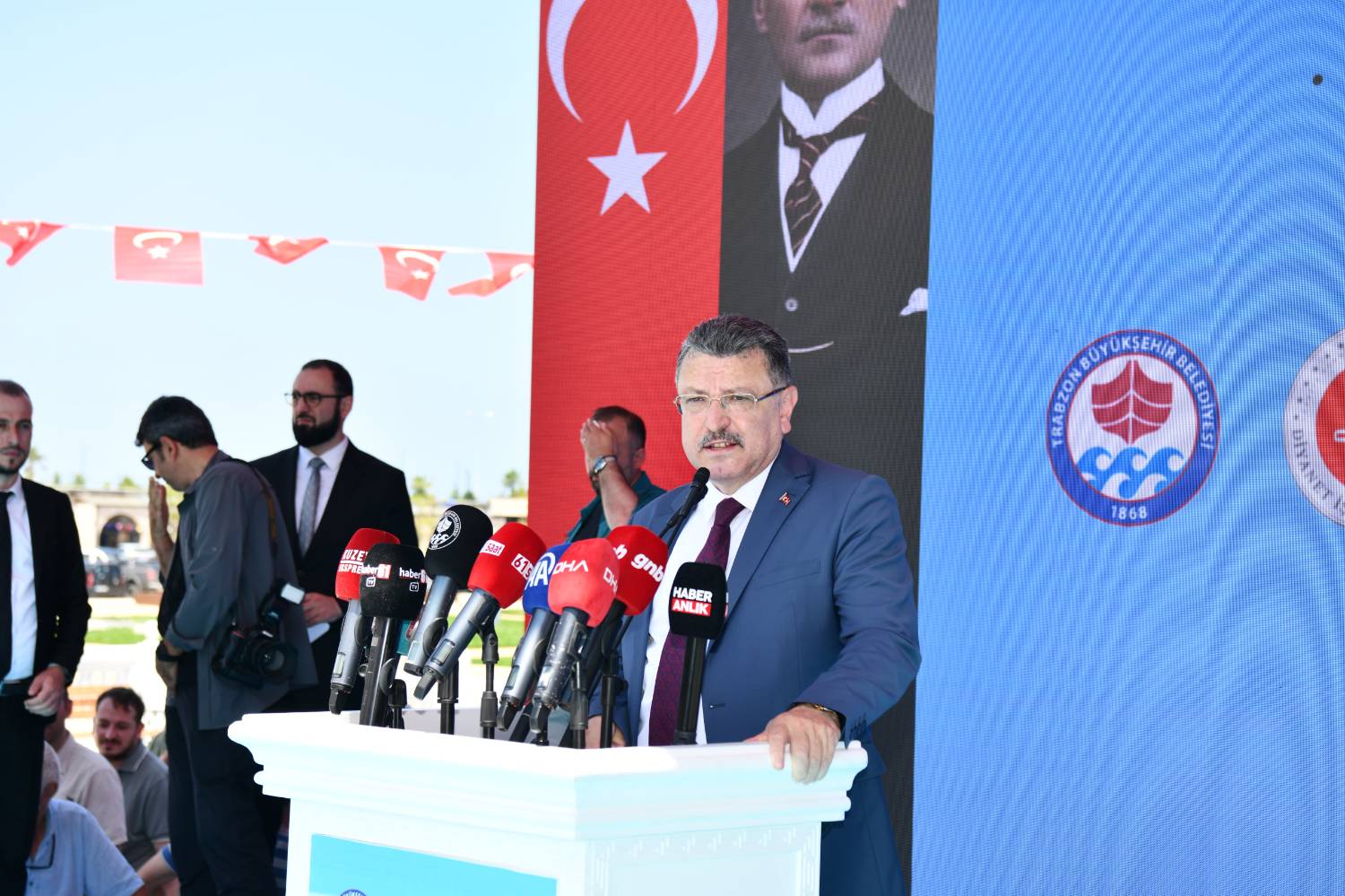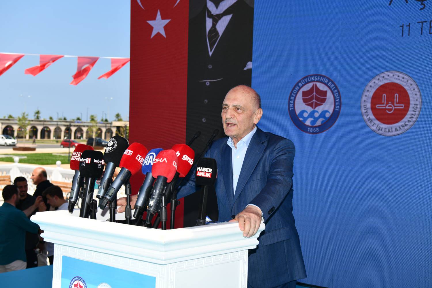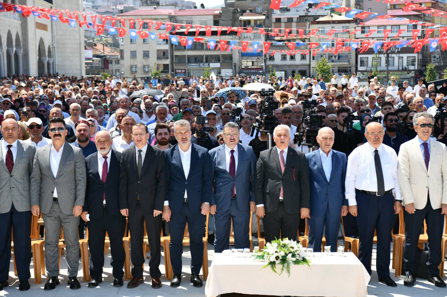 Önceki dönem Çevre ve Şehircilik Bakanı Erdoğan Bayraktar, “Trabzon halkı bu camiyi sahiplendi. Bu cami Trabzon’a çok yakıştı. Bu kadim vilayet önemli bir şehirdir. 12. asırdan itibaren Selçuklu Türklerinin Anadolu topraklarında İslam’ı yaygınlaştırma gayretleriyle doğu Karadeniz’de filizlenen İslamiyet nihayet 1461 yılında Fatih Sultan Mehmet hanın Trabzon’u fethetmesiyle bölge tam anlamıyla bir İslam beldesi olmuştur. 2019 yılından itibaren inşaatına devam ettik. Bu eserde emeği geçen herkese teşekkür ediyorum. Caminin yapılması fikrini ortaya koyan ve sahip çıkan önceki dönem Büyükşehir Belediye Başkanımız Orhan Fevzi Gümrükçüoğlu’na, Ortahisar Belediye Başkanlığı’nda ve Büyükşehir Belediye Başkanlığı’nda vermiş olduğu destekleri için Ahmet Metin Genç’e teşekkür ediyorum. Büyükşehir Belediyesi Fen İşleri Daire Başkanı Murat Öztürk'e ve belediye çalışanlarına, dönemin valisi kıymetli valimiz rahmetli Yücel Yavuz'a, bugünkü Trabzon Valimiz Aziz Yıldırım'a, İl Müftümüz Selami Aydın’a, Ortahisar Müftümüz Özcan Yılmaz'a, değerli hocam Profesör Dr. Şaban Şimşek'e, eski milletvekilleri Mahmut Kaplan, Mikail Aslan, Mete Bülgün’e, eski Milli Eğitim Bakanımıza, genel müdürümüz Seyfullah Aslantürk’e, mimar Safiye Demir’e, derneğimizin başkanı İrfan Altıner’e ve emek veren herkese çok teşekkür ediyorum. Camiler sadece ibadetlerimi yapmak için bir araya geldiğimiz yer değildir, tüm medeniyetlerin merkezinde cami vardır. Camimiz aynı anda 7 bin 700 kişinin ibadet yapabileceği bir alana sahiptir. Bu cami ve külliye simge niteliği kazanacaktır. Trabzon bizim sevdamızdır. Trabzon vatanına, bayrağına ve milletine bağlı birçok kişinin yetiştirdiği şehirdir. Trabzon’un cazibe merkezi olma özelliğini artırmalıyız. Eğitim, üretim, sanayi ve turizmin artması için elimizden geleni yapmalıyız” diye konuştu. Konuşmaların ardından İl Müftüsü Selami Aydın’ın dualarıyla cami açılışı gerçekleştirilerek ilk Cuma namazı kılındı.