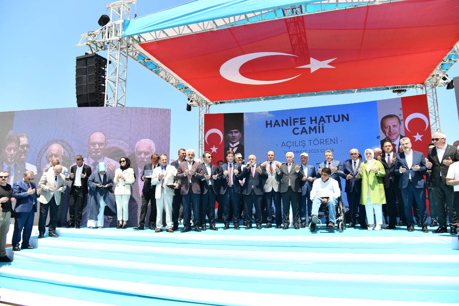 Başkan Genç, caminin yapımında katkıda bulunan herkese teşekkür ederek, “Merhume Hanife Hatun Hanımefendi'ye Cenab-ı Allah'tan rahmet diliyorum. Peygamber efendimiz buyuruyor; Kim Allah rızası için bir mescit yaptırırsa Allah da onun için cennette bir köşk hazırlar. İşte bu müjde bizlere bir cami inşa etmenin sadece bir yapıyı değil ebedi bir kazancın vesilesi olduğunu da gösteriyor. Bizler camilerimizi, yalnızca günde beş vakit namaz kılma mekanları olarak görmüyoruz. Camilerimiz aynı zamanda hayatımızın da merkezinde olan bir ilim ve irfan yuvası, bir hizmet yuvasıdır. Hanife Hatun Camiimiz, içinde yer alan atölyeleriyle, derslikleriyle, konferans salonlarıyla, sosyal alanlarıyla birliğe, beraberliğe, kardeşliğe, eğitime ve paylaşmaya da hizmet eden çok yönlü bir merkez olacak. Ecdadın izinde yürüyen bir iradeyi kararlılıkla, emekle büyük bir gayretle ve fedakarlıkla, işbirliğiyle, dayanışmayla, hayata geçirmesine vesile olan çok kıymetli bakanıma, onun çalışma arkadaşlarına, belediyemizden katkı sağlayan değerli mesai arkadaşlarıma teşekkür ediyorum” dedi.