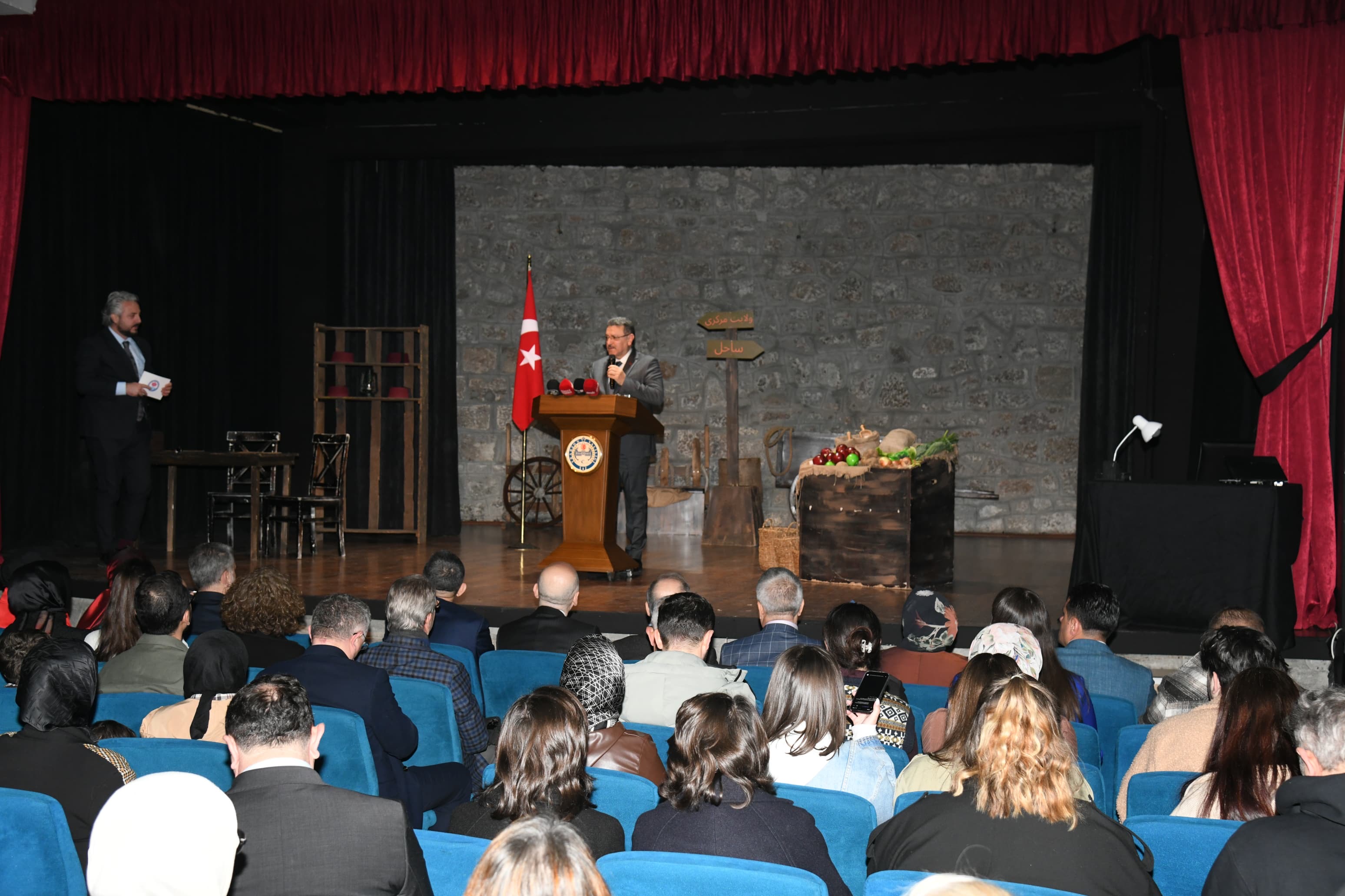 Programda konuşan Başkan Genç, “Hüseyin Kazaz Kültür Merkezimiz, nihayet tiyatro sahnelerimizle yeniden buluşuyor. Öncelikle katkılarından dolayı kıymetli bakanımıza, değerli valimize ve emeği geçen herkese teşekkür ediyorum. Burası, rahmetli Orhan Karakullukçu başkanımız tarafından şehrimizin kültür ve sanat hayatına katkı sağlamak amacıyla düşünülmüş önemli bir merkezdir. Bu güzel tiyatro oyunu ‘Muhacirlik’ ile yeniden kapılarını açmış olmasının mutluluğunu yaşıyoruz. Bu süreçte bizleri motive eden sanatçılarımıza, derneklerimize ve tüm paydaşlara ayrıca teşekkür ediyorum” dedi.