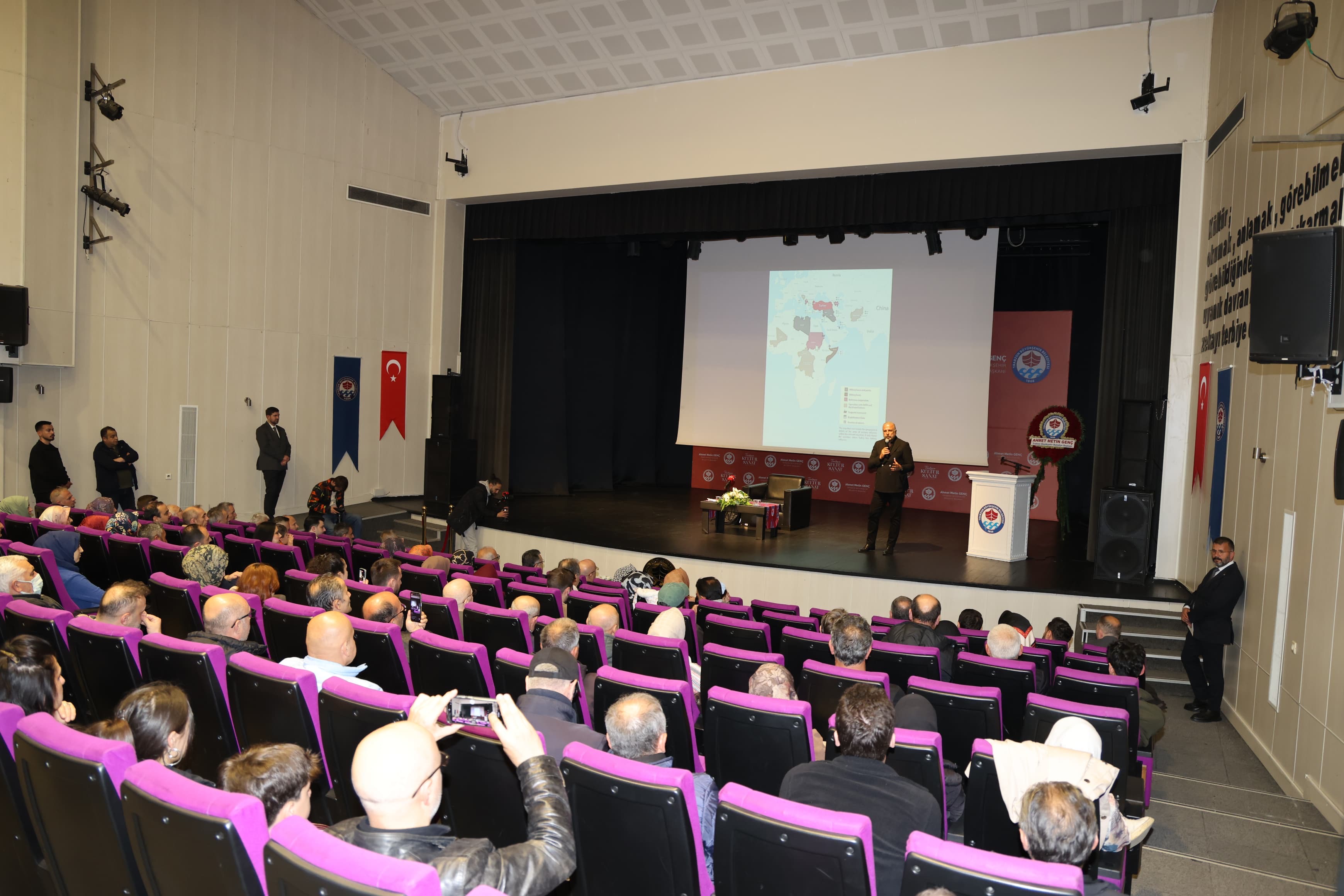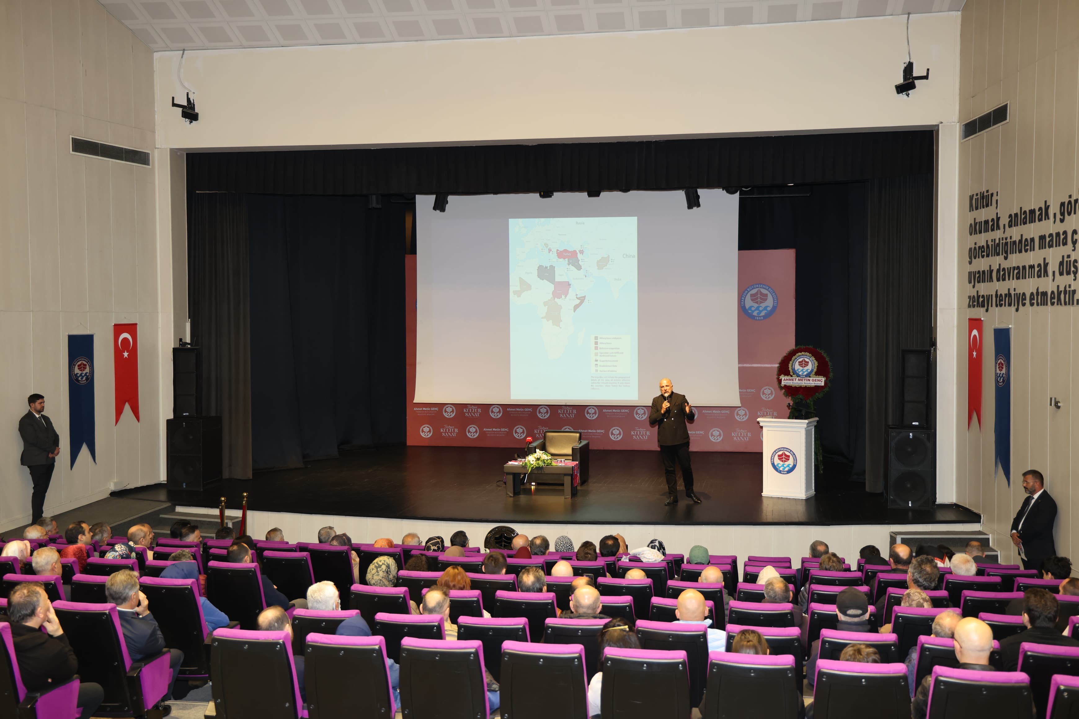Trabzon Büyükşehir Belediyesi’nin kültür ve sanat etkinlikleri kapsamında “Yeni Dünya Düzeninde Türkiye’nin Yeri” konulu seminer veren Mete Yarar'a vatandaşlar yoğun ilgi gösterdi.