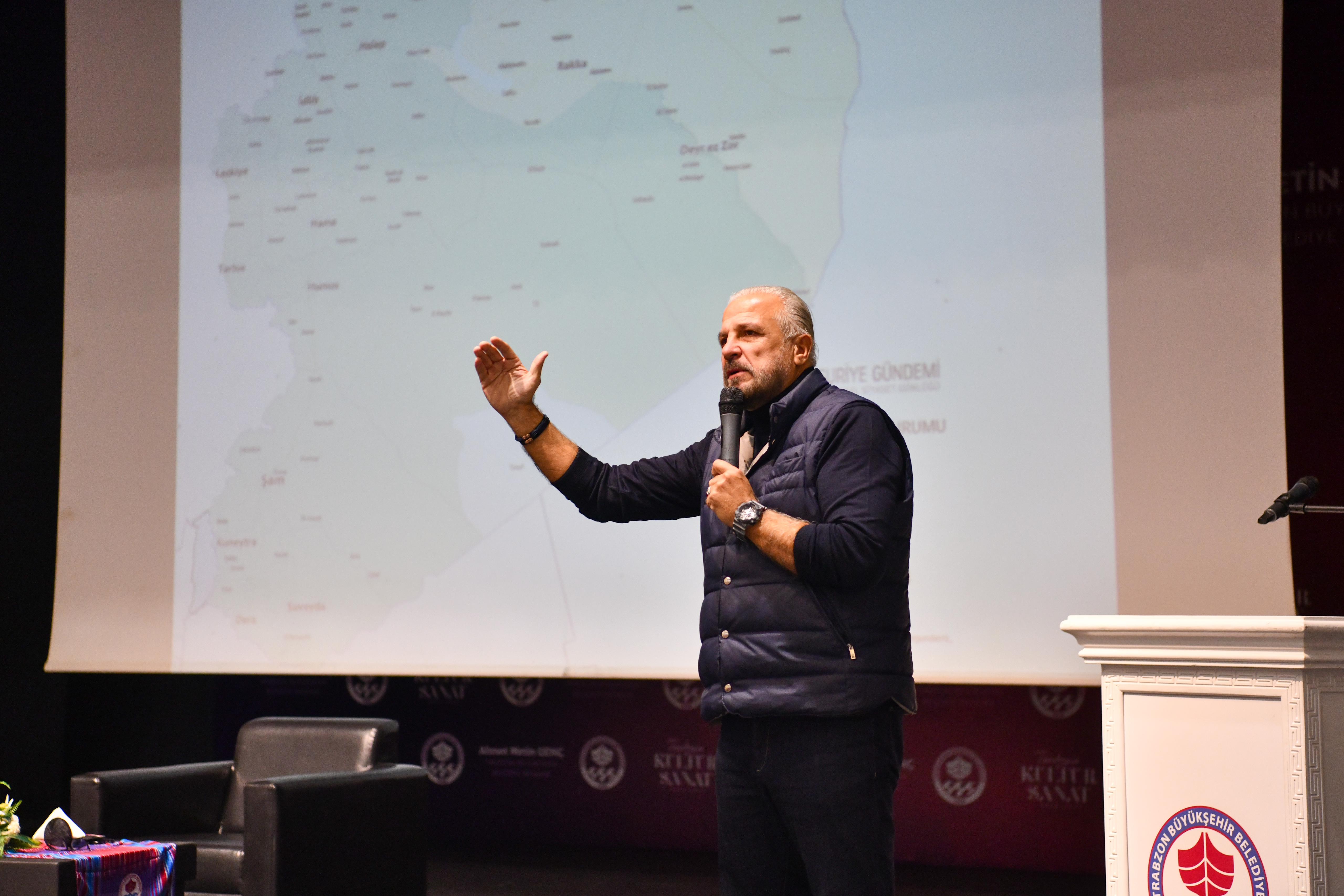 Trabzon Büyükşehir Belediyesi'nin düzenlediği programda konuşan emekli subay, yazar ve strateji uzmanı Mete Yarar, Suriye’deki son durumu değerlendirdi. Yarar, “Bölgedeki sorunun çözülmesi Türkiye için tarihi bir fırsat olacaktır” dedi.