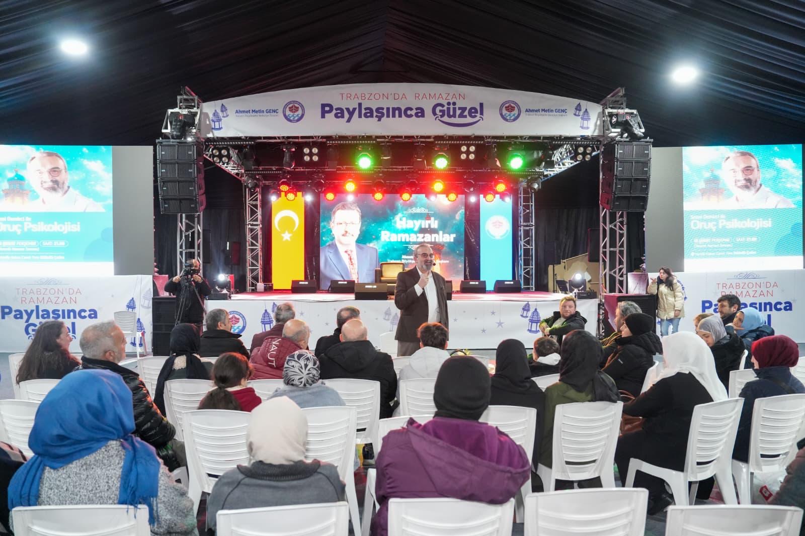 Trabzon Büyükşehir Belediyesi tarafından düzenlenen Ramazan etkinlikleri kapsamında gerçekleştirilen Ramazan Söyleşileri, yazar Senai Demirci’nin “Oruç Psikolojisi” başlıklı söyleşisiyle başladı. Vatandaşların yoğun ilgi gösterdiği programda, oruç ibadetinin bireysel ve toplumsal etkileri ele alındı.