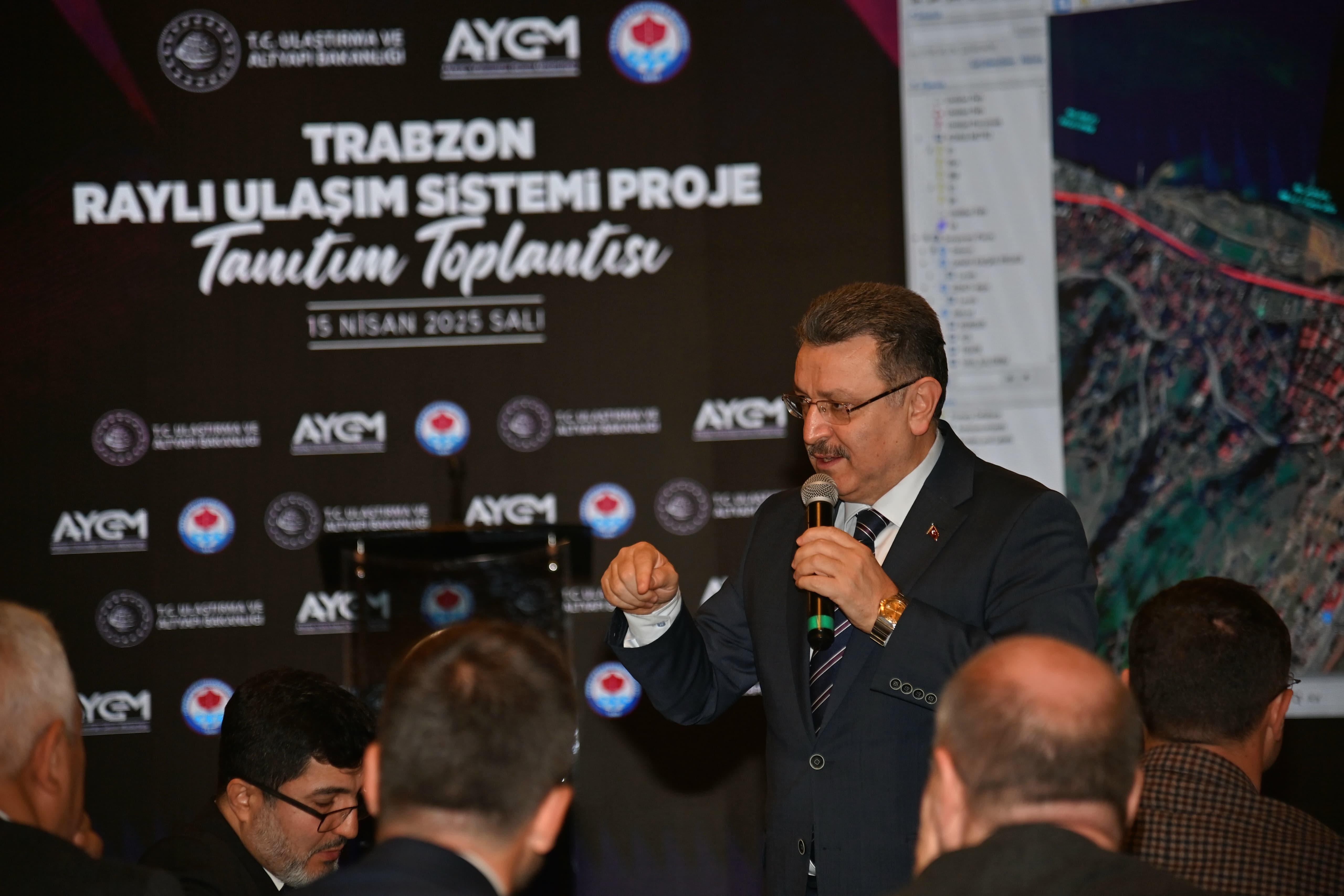 Trabzon Büyükşehir Belediye Başkanı Ahmet Metin Genç, “Bugün, şehrimizin şehir içi ulaşımı açısından büyük önem taşıyan ve seçim döneminde birinci sözümüz olarak taahhüt ettiğimiz şehir içi raylı sistem projemizin tanıtım toplantısında bir araya gelmiş bulunuyoruz. Trabzon’u detaylı şekilde analiz ettiğimizde, özellikle şehir içi ulaşım standartlarının yükseltilmesi, daha konforlu bir ulaşım sağlanması ve toplu taşımayı teşvik etmek adına yapılan çalışmaların öne çıktığını görmekteyiz. Bu çalışmalardan en önemlisi de raylı sistem projemizdir. Bu projeyi sizlere seçim sürecinde birinci sözümüz olarak duyurmuştuk. O gün kamuoyuna, 'Bu işi ay, gün ve saat saat takip edeceğim' diyerek bir taahhütte bulunmuştum. Hamdolsun, bugün geldiğimiz noktada bu sözümüzü adım adım hayata geçirmenin gururunu yaşıyoruz. 4 Nisan’da mazbatamızı aldıktan sonra, 24 Nisan’da çok kıymetli genel müdürümüzün de teşrifleriyle belediyemizde ilk protokolümüzü imzaladık. Ardından, 13 Ağustos 2024 tarihinde projemiz Cumhurbaşkanlığı Strateji ve Bütçe Başkanlığı’ndan onay aldı. Hızlı ve kararlı bir takip sürecimizin sonucunda, 12 Ekim 2024 tarihinde de uygulama projesinin ihalesini gerçekleştirdik. Yüksel Proje firmamıza yer teslimini süratle tamamladıktan sonra, uygulama projesi ve güzergah çalışmaları eş zamanlı olarak başlatıldı” dedi.