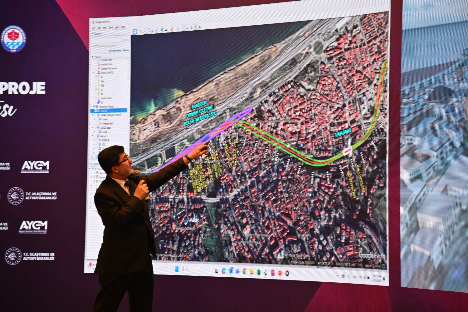 Ulaştırma ve Altyapı Bakanlığı Altyapı Yatırımları Genel Müdürü Yalçın Eyigün, yaptığı sunumda, “Bu güzel şehre her geldiğimizde heyecan duyuyoruz. Tüm kültürel ve sosyal sebepleri bir tarafa ama mühendislik açısından Trabzon'a geldiğimizde bizim açımızdan çözülmesi gereken özel durumlar ile karşı karşıyayız. Bir problemi çözmek bir mühendis için en önemli ve en değerli hedeftir. Trabzon'un nevi şahsına münhasır özellikleri var. Şehirler büyüdükçe raylı sisteme sıra geliyor. Büyükşehir Belediye Başkanımız Sayın Genç'in raylı sistemle Trabzon'un buluşturulması üzerine yaptığı çalışmalar var. Kendisinin talebi, bakanlığımızın sunuşu ve Sayın Cumhurbaşkanımızın da tensipleriyle, Trabzon'u raylı sistemle buluşturma hedefinin somut adımları geçtiğimiz yıl itibariyle atılmış oldu. Tek bir hedefimiz var; aslında önümüzdeki kısa, orta ve uzun vadede ulaşımın raylı sistem özelindeki kısmını planlayalım. Her şehrin kendine özgü bir durumu var. Hiçbir şehir diğer bir şehir için tam olarak örnek değil. Trabzon için sadece Trabzon'a uyan, Trabzon'a çok iyi oturdu diyebileceğimiz bir formül gerekmekteydi. Bu açıdan bakıldığında malumunuz sahil yolumuz var ama oturum alanları tepelerde. Dolayısıyla bu şehri bir tramvay ile çözme fikri ilk adımdı. Dümdüz bir şehirden bahsetmiyoruz” dedi.
