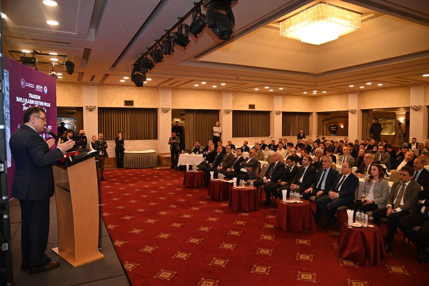 Trabzon Büyükşehir Belediye Başkanı Ahmet Metin Genç’in en önemli vaatlerinden biri olan ve “Gün gün takip edeceğim” dediği Trabzon Raylı Ulaşım Sistemi Projesi'nin tanıtımı yapıldı. Başkan Genç’in ev sahipliğinde, Ulaştırma ve Altyapı Bakanlığı Altyapı Yatırımları Genel Müdürü Yalçın Eyigün’ün katılımıyla gerçekleştirilen toplantıya, Trabzon Valisi Aziz Yıldırım, Karadeniz Teknik Üniversitesi Rektör Yardımcısı Bünyamin Er, Trabzon Üniversitesi Rektör Yardımcısı ve Kent Konseyi Başkanı Hasan Karal, Avrasya Üniversitesi Rektörü Prof. Dr. Mahir Kadakal, Ortahisar Belediye Başkanı Ahmet Kaya, Akçaabat Belediye Başkanı Osman Nuri Ekim, Yomra Belediye Başkanı Mustafa Bıyık, Altyapı Yatırımları Genel Müdürlüğü Kentiçi Raylı Sistemler Şube Müdürü Kutay Güzel, Altyapı Yatırımları Genel Müdürlüğü Kentiçi Raylı Sistemler Proje Dairesi Başkanı Ahmet Tunçsoy, Yüksel Proje A.Ş. Yönetim Kurulu Başkanı Celal Akın, ilgili kurumların yetkilileri, sivil toplum kuruluşlarının temsilcileri ve çok sayıda davetli katıldı.