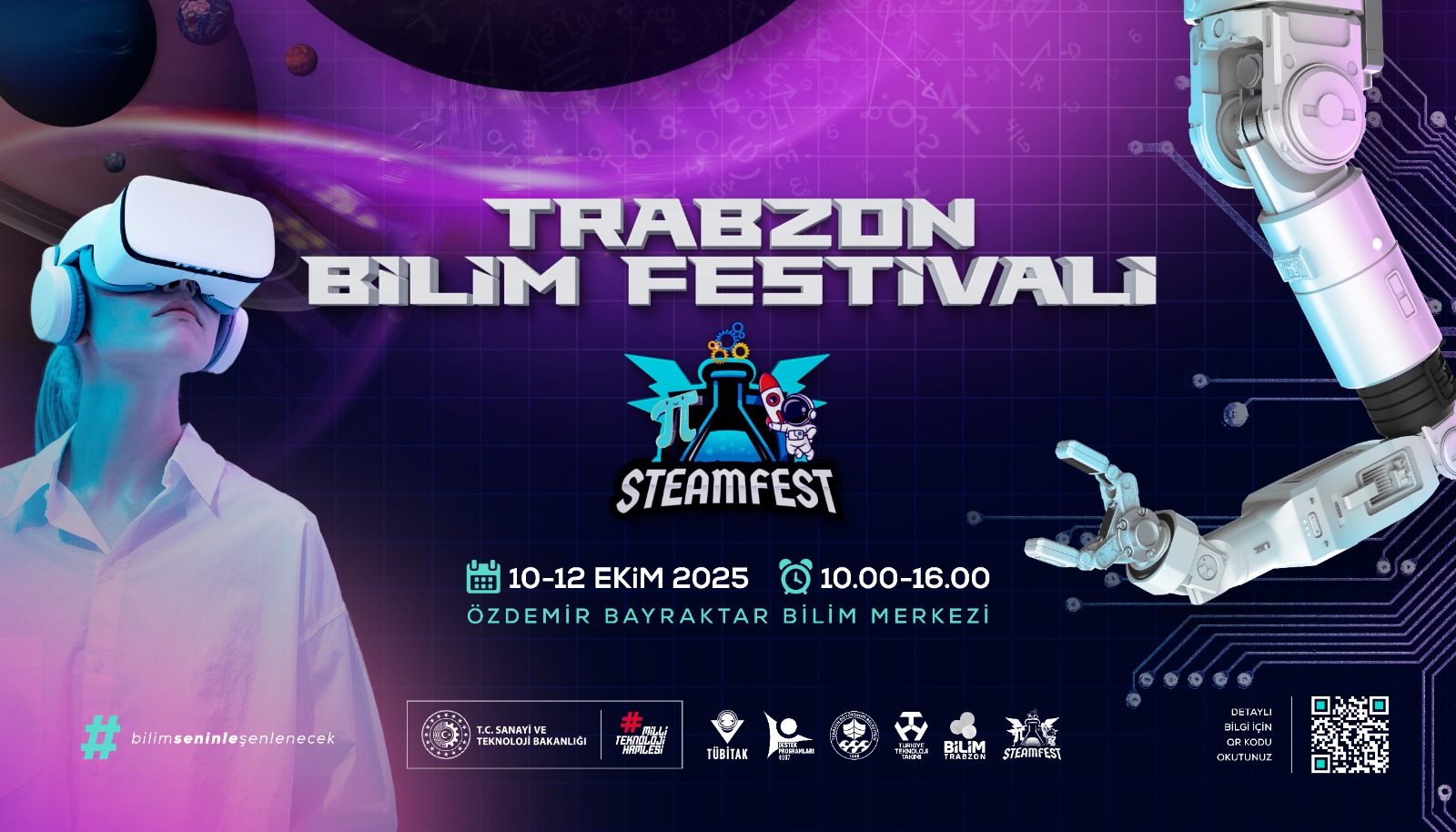 Trabzon Büyükşehir Belediyesi önemli bir etkinliğe imza atmaya hazırlanıyor. Bilim ve teknolojiye olan ilgiyi artırmak, öğrencilerin bilimsel düşünme becerilerini geliştirmek, bilim, teknoloji, mühendislik, sanat ve matematik alanlarında yaratıcı, yenilikçi çözümler üretmelerine katkı sağlamak ve teşvik etmek amacıyla, 10-12 Ekim 2025 tarihleri arasında Özdemir Bayraktar Bilim Merkezinde geniş katılımlı Bilim Festivali düzenlenecek. Merakla beklenen festival 10 Ekim Cuma günü saat 10:00’ da başlayacak. TÜBİTAK 4007- Bilim Şenlikleri Destekleme Programı kapsamında desteklenen 125B807 proje kodlu "STEAMFEST TRABZON-Bilimle Büyüyen Zihinler" başlıklı bilim şenliği her yaş grubundan katılımcıya hitap edecek. Zengin bir içeriğe sahip olan bilim şenliği kapsamında, bilim söyleşileri, deneysel atölyeler, yaratıcı drama etkinlikleri, bilimsel şovlar, canlı heykeller, bilim tiyatroları, planetaryum gösterimleri, teknoloji sergileri ve simülasyonlar gibi etkinlikler yer alacak. 3 gün sürecek şenliğe, Trabzon ve çevre illerden yaklaşık 70 bin kişinin katılması bekleniyor.