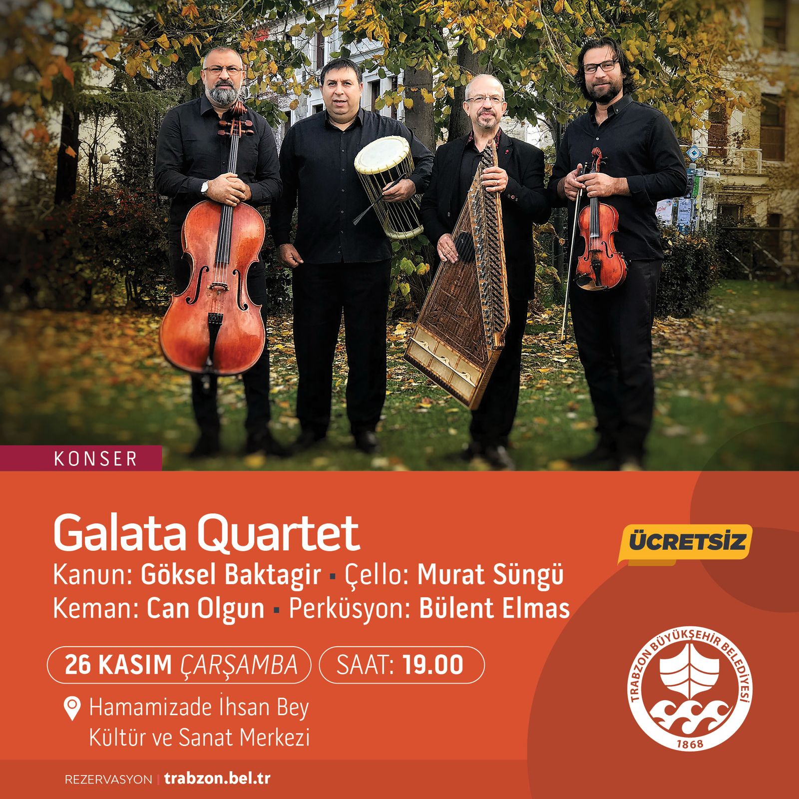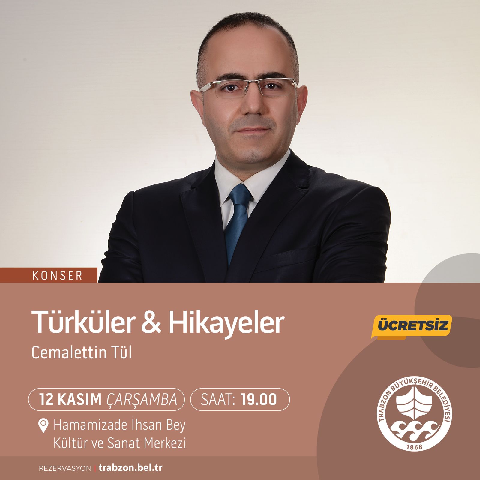 Kasım ayı etkinlikleri kapsamında ayrıca müzikseverler için konser ve resitaller de düzenlenecek. 5 Kasım Çarşamba günü “Atatürk’ün Sevdiği Şarkılar” konseri, 12 Kasım Çarşamba günü “Cemalettin Tül ile Türküler ve Hikayeler” konseri, 25 Kasım Salı günü Özkan Ali Aydın ve Burak Koç’un sahne alacağı piyano resitali ve 26 Kasım Çarşamba günü Galata Quartet konseri Hamamizade İhsan Bey Kültür ve Sanat Merkezi’nde gerçekleştirilecek.