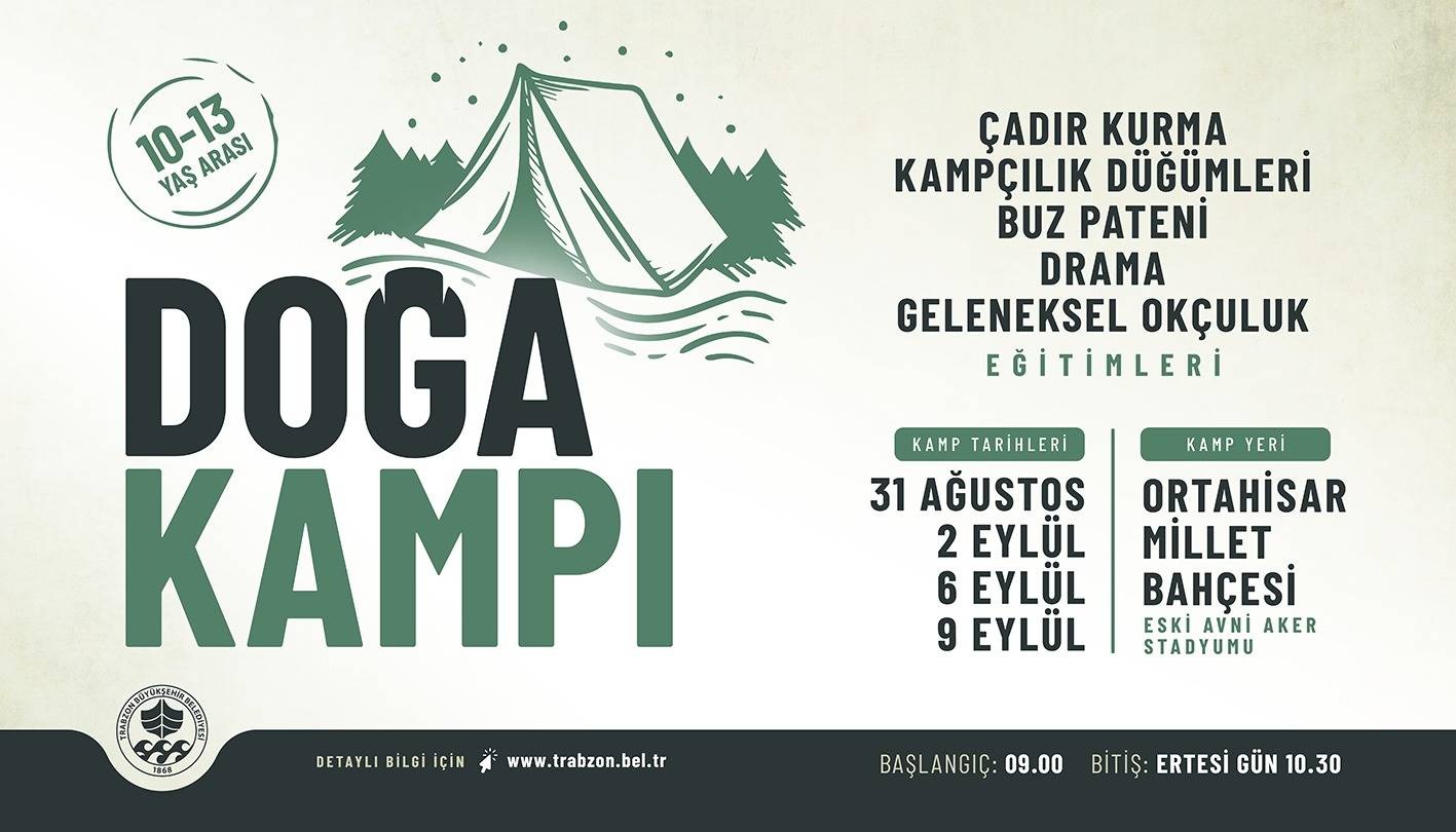 Trabzon Büyükşehir Belediyesi tarafından 10-13 yaş grubu için kamp etkinliği düzenlenmiştir. Etkinliğe katılım için başvurular 24/08/2022 - 09/09/2022 tarihleri arasında yapılacaktır. Başvuru yapmak için