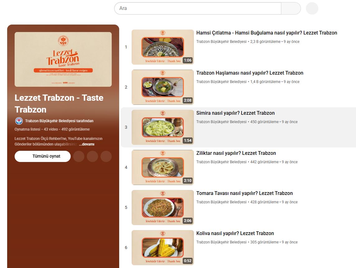 Trabzon Büyükşehir Belediyesi, nesilden nesile aktarılan yöresel mutfak kültürünü 'Lezzet Trabzon' adlı eserle kayıt altına aldı. Kültür, Sanat ve Sosyal İşler Dairesi Başkanlığı’na bağlı Turizm Şube Müdürlüğü tarafından hazırlanan kitapta; çorbalardan tavaya, balık çeşitlerinden ana yemeklere, ara sıcaklardan tatlılara kadar Trabzon mutfağına özgü 43 farklı tarif yer alıyor. Kitap yalnızca yazılı tariflerden oluşmuyor, sayfalarda bulunan QR kodlar aracılığıyla yemeklerin malzemeleri ve yapılış aşamaları videolu anlatımlarla dijital ortamda da izlenebiliyor. İlk etapta Türkiye genelinde gastronomi eğitimi veren okullara dağıtılması planlanan kitapla, Trabzon’un zengin mutfak mirasının ulusal ve uluslararası alanda tanıtılmasına katkı sağlanması hedefleniyor.