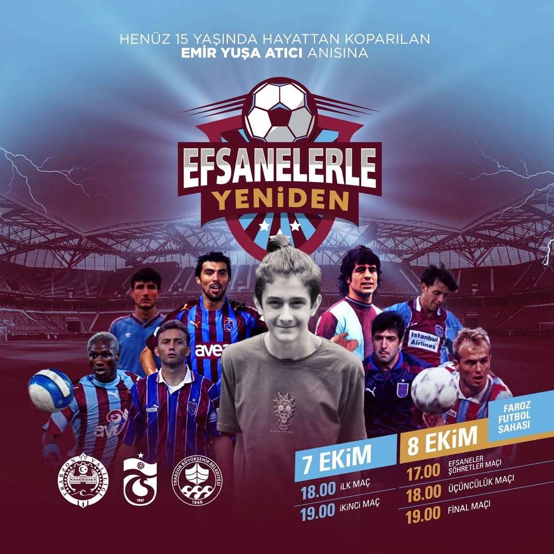 Trabzon Büyükşehir Belediyesi’nin ev sahipliğinde, Trabzon Valiliği ve Trabzonspor Kulübü’nün paydaşlığında “Efsanelerle Yeniden” futbol turnuvası düzenlenecek. Dört yıl önce yorgun mermi sonucu yaşamını yitiren 15 yaşındaki Emir Yuşa Atıcı anısına gerçekleştirilecek turnuva, toplumsal farkındalık oluşturmayı hedefliyor.