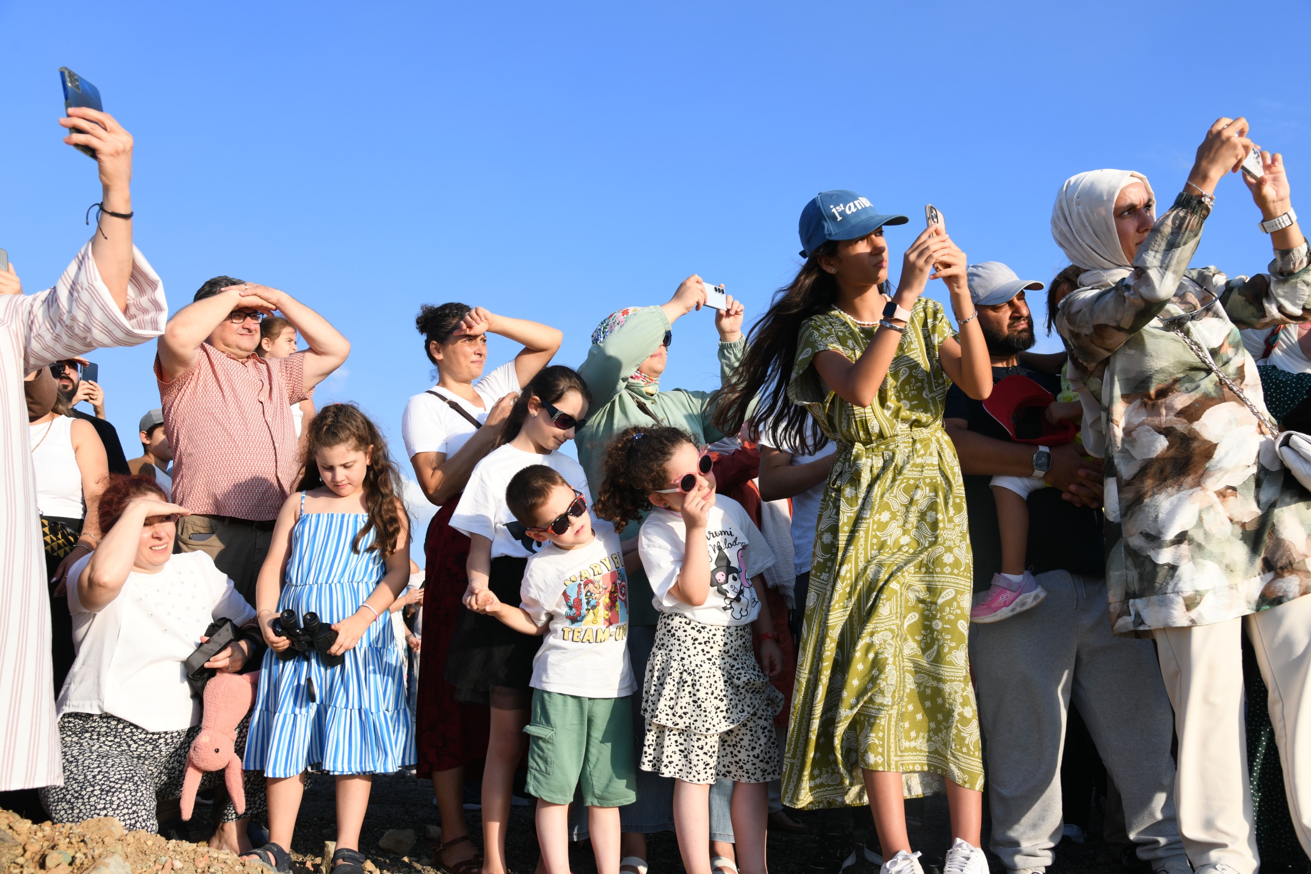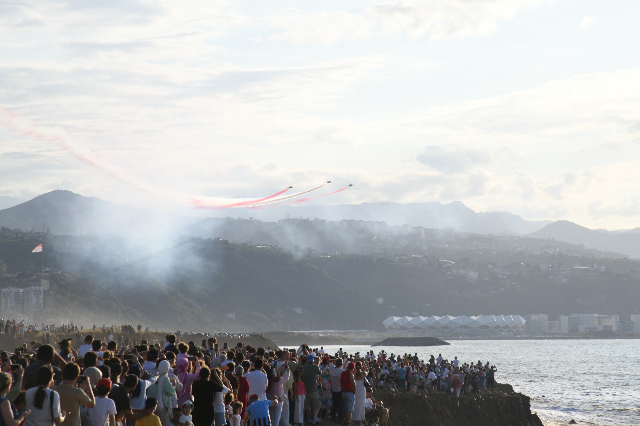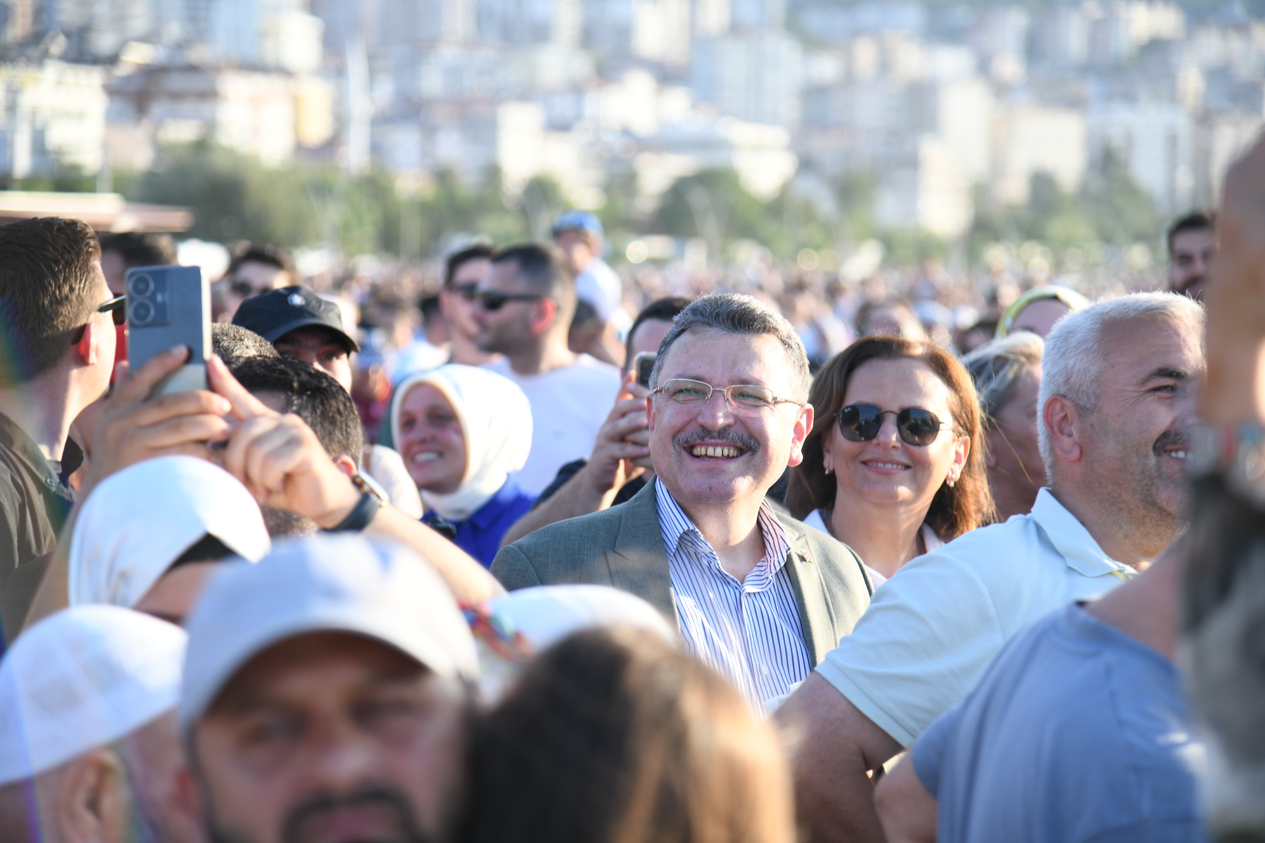 Başkan Genç, sözlerini şöyle tamamladı: “Bugün insanlık bizden bir mesaj bekliyor. Katil İsrail devleti, Gazze’de soykırım yapıyor. Çocukları ve kadınları öldürüyorlar. Çocuklar büyüyüp kendi topraklarını savunmasın, kadınlar çocuk doğurmasın diye katliam yapıyorlar. Bu, apaçık bir soykırımdır. Bu yüzden buradan, Trabzon’umuzdan, hep birlikte katil ve soykırımcı İsrail devletini şiddetle lanetliyor, kınıyoruz. Allah’ın gazabı onların üzerine olsun. Oradaki kardeşlerimiz için, bebekler için, anneler için, bir yudum suya ve bir lokma ekmeğe muhtaç olanlar için dua edeceğiz. Ama sadece dua etmekle kalmayacağız. Bugün bütün dünya suskun, maalesef Müslüman âlemi de suskun. Ancak ayağa kalkan bir Türkiye var. Haksızlığa karşı her platformda itirazını dile getiren, gür bir sesle haykıran bir liderimiz var: Recep Tayyip Erdoğan. İnşallah Cumhurbaşkanımızın çizdiği vizyonla, Gazze’deki mazlumun ve mağdurun sesi olmaya devam edeceğiz. Bunun için daha çok çalışacak, daha güçlü olacağız. Bu vesileyle, milli duygularımızı kabartan, gurur kaynağımız olan Türk Yıldızlarımıza, güzel Trabzon’umuza hoş geldiniz, sefalar getirdiniz, şeref verdiniz diyorum. Biliyorum ki böyle gururlu günlerde, Trabzonlular bizleri hiçbir zaman yalnız bırakmadı. Bu vesileyle Trabzon'un bir evladı olmaktan ve Trabzonlu olmaktan da bir kez daha gurur duyduğumu ifade etmek istiyorum.” Konuşmaların ardından Trabzon semalarında adeta görsel bir şölen sunan Türk Yıldızları, gerçekleştirdikleri nefes kesici manevralar ve gösteri uçuşlarıyla izleyenleri hayran bıraktı. Coşkulu kalabalık, gökyüzündeki akrobatik hareketleri alkış yağmuruna tuttu. Program Vira Cemal’in sahne performansıyla sona erdi.