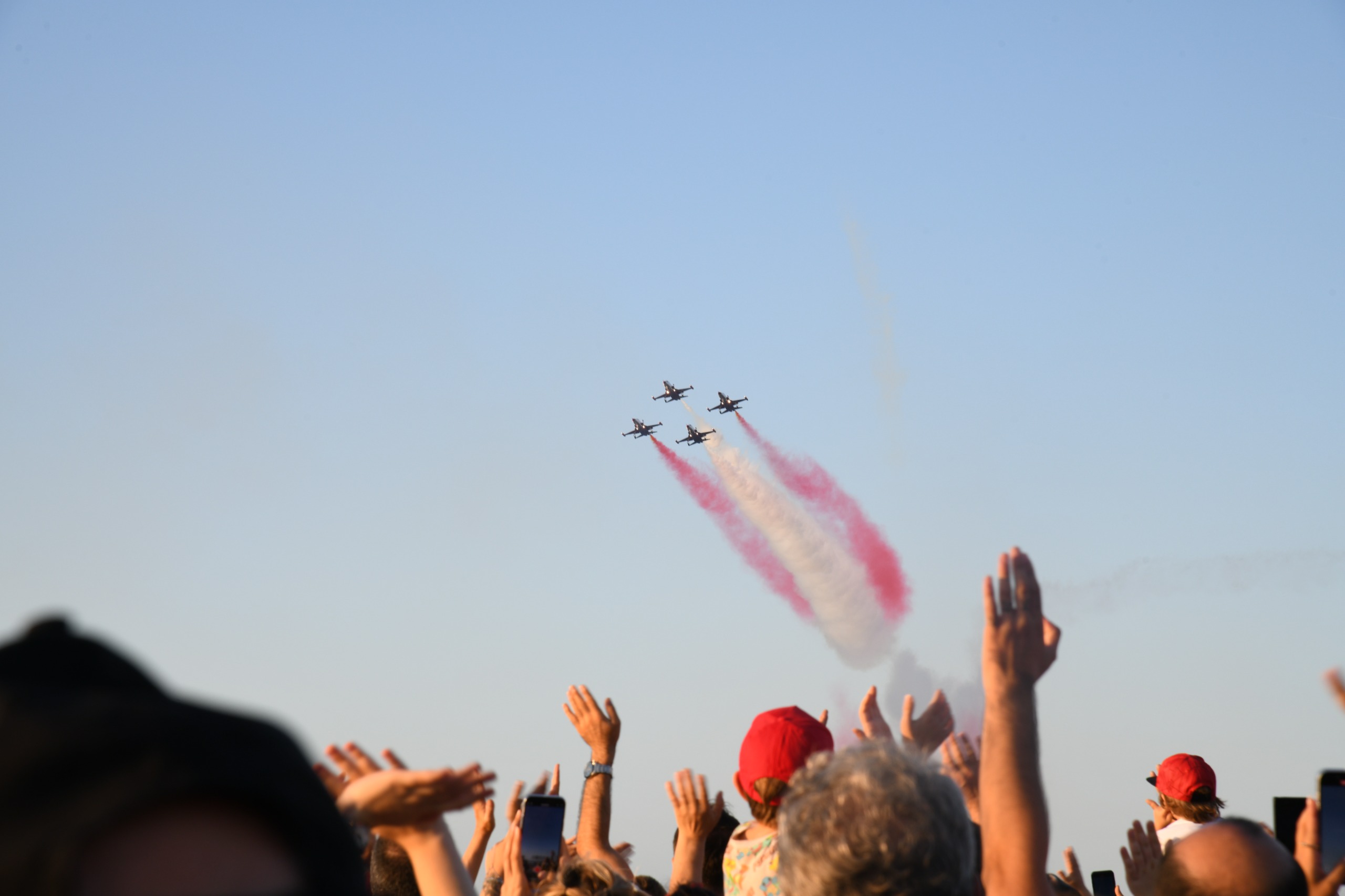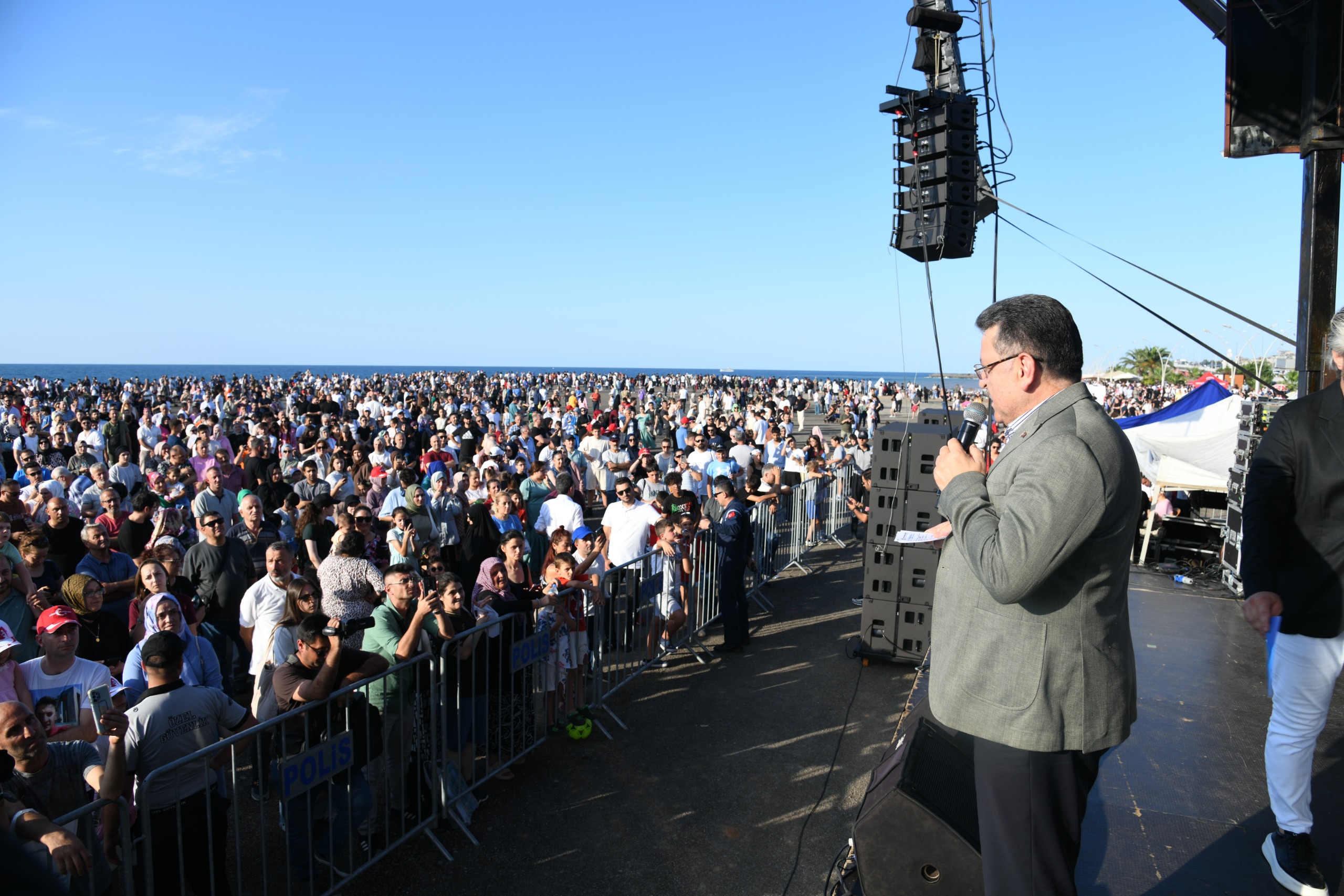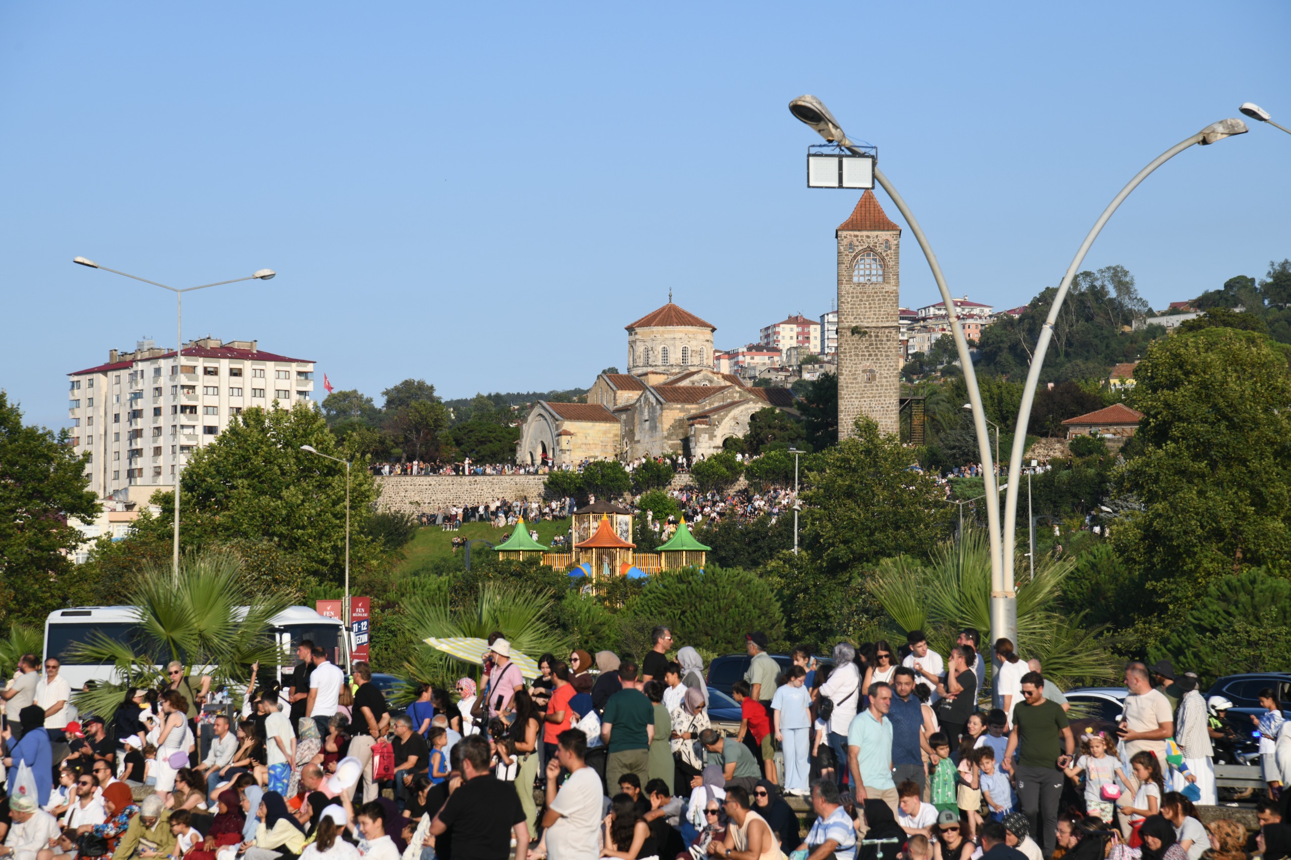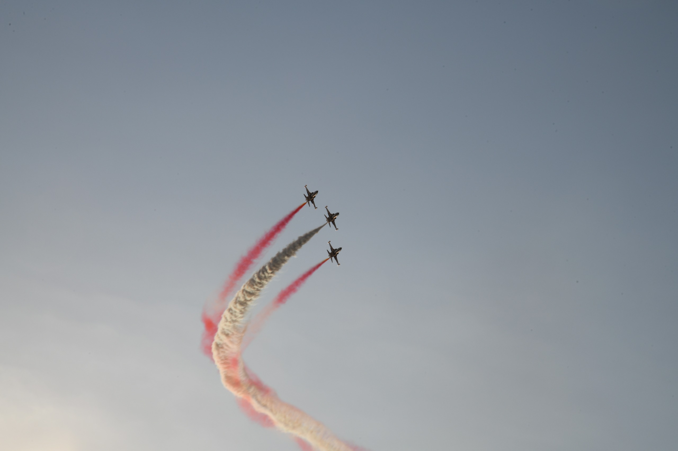 Başkan Genç, sözlerini şöyle tamamladı: “Bugün insanlık bizden bir mesaj bekliyor. Katil İsrail devleti, Gazze’de soykırım yapıyor. Çocukları ve kadınları öldürüyorlar. Çocuklar büyüyüp kendi topraklarını savunmasın, kadınlar çocuk doğurmasın diye katliam yapıyorlar. Bu, apaçık bir soykırımdır. Bu yüzden buradan, Trabzon’umuzdan, hep birlikte katil ve soykırımcı İsrail devletini şiddetle lanetliyor, kınıyoruz. Allah’ın gazabı onların üzerine olsun. Oradaki kardeşlerimiz için, bebekler için, anneler için, bir yudum suya ve bir lokma ekmeğe muhtaç olanlar için dua edeceğiz. Ama sadece dua etmekle kalmayacağız. Bugün bütün dünya suskun, maalesef Müslüman âlemi de suskun. Ancak ayağa kalkan bir Türkiye var. Haksızlığa karşı her platformda itirazını dile getiren, gür bir sesle haykıran bir liderimiz var: Recep Tayyip Erdoğan. İnşallah Cumhurbaşkanımızın çizdiği vizyonla, Gazze’deki mazlumun ve mağdurun sesi olmaya devam edeceğiz. Bunun için daha çok çalışacak, daha güçlü olacağız. Bu vesileyle, milli duygularımızı kabartan, gurur kaynağımız olan Türk Yıldızlarımıza, güzel Trabzon’umuza hoş geldiniz, sefalar getirdiniz, şeref verdiniz diyorum. Biliyorum ki böyle gururlu günlerde, Trabzonlular bizleri hiçbir zaman yalnız bırakmadı. Bu vesileyle Trabzon'un bir evladı olmaktan ve Trabzonlu olmaktan da bir kez daha gurur duyduğumu ifade etmek istiyorum.” Konuşmaların ardından Trabzon semalarında adeta görsel bir şölen sunan Türk Yıldızları, gerçekleştirdikleri nefes kesici manevralar ve gösteri uçuşlarıyla izleyenleri hayran bıraktı. Coşkulu kalabalık, gökyüzündeki akrobatik hareketleri alkış yağmuruna tuttu. Program Vira Cemal’in sahne performansıyla sona erdi.