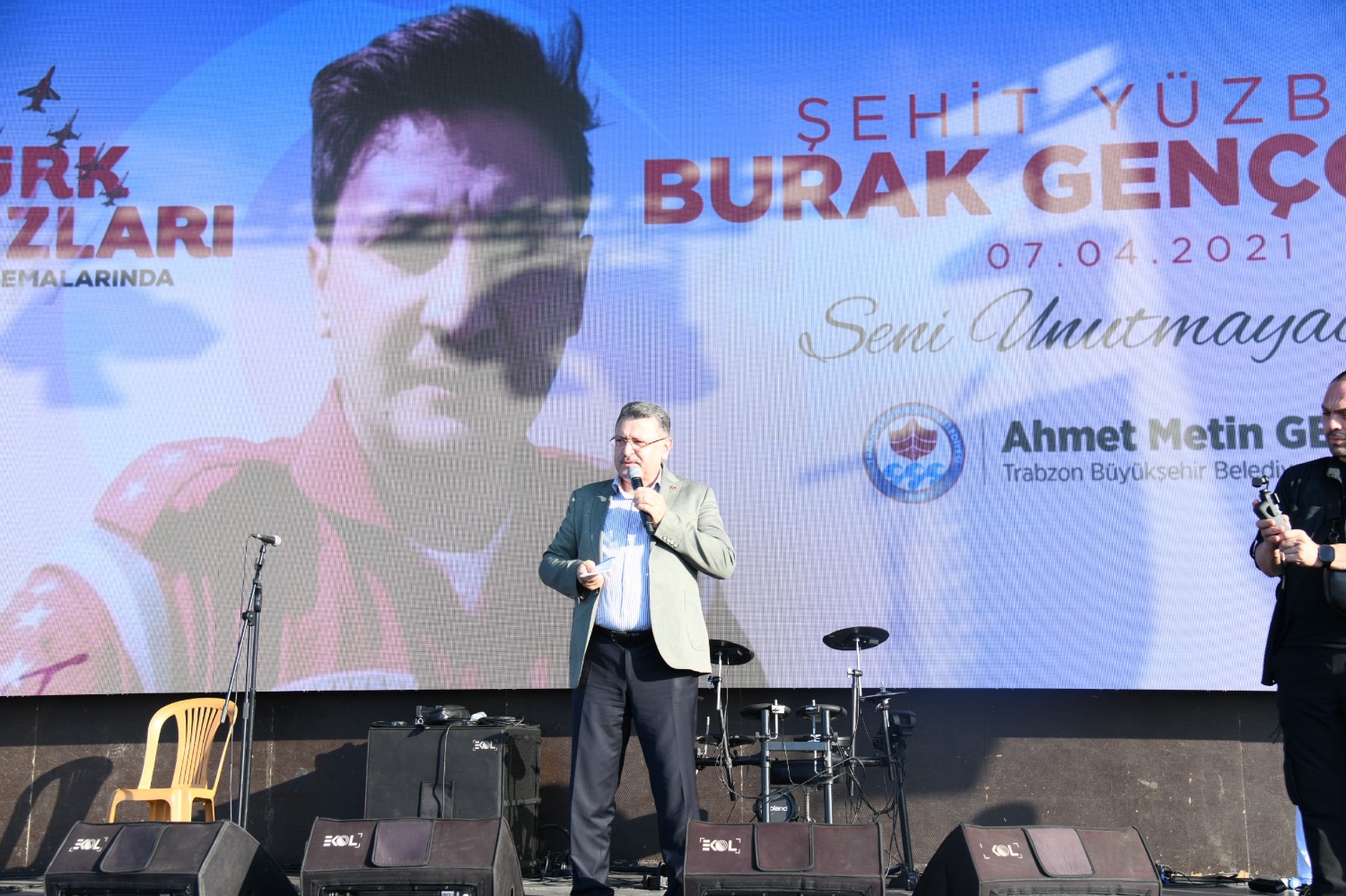 Türk Yıldızları’nın, Trabzon semalarında Trabzonlu şehidimiz Hava Pilot Yüzbaşı Burak Gençcelep’in hatırası için gerçekleştirdiği gösteriye katılan Trabzon Büyükşehir Belediye Başkanı Ahmet Metin Genç, “Bugün burada hem aziz şehidimizi rahmet ve minnetle anıyor hem de milletimizin gururu Türk Yıldızları’nı Trabzon’da ağırlamanın onurunu yaşıyoruz” dedi.
