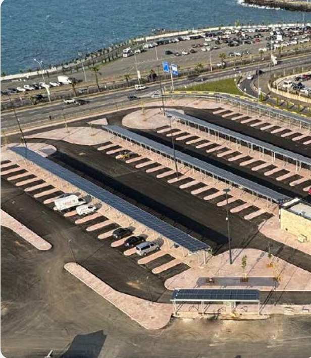 ayrı noktada güneş enerjisi paneli kurulum çalışmaları tamamlanmış olup, şehrin 5 ayrı noktasında güneş enerjisi entegreli araç