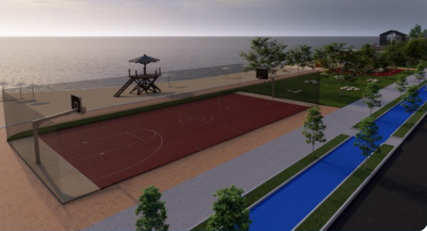 plaj düzenlemeleri, soyunma kabinleri, duşlar, WC üniteleri, büfe ve restoran