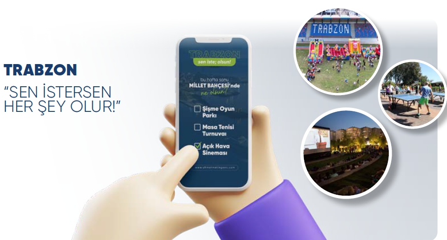 Kentsel alanlarda yapılacak etkinlikler başta olmak üzere birçok alanda vatandaşlarımızın görüşünü alarak tüm kent yaşayanlarını kentin yönetimine davet edecek uygulamaları hayata geçireceğiz. Saati ve konusu önceden belirlenen soruları, ilan edilen zamanda vatandaşlarımızın oylamasına sunarak talep doğrultusunda planlama veya uygulama yapacağız.
